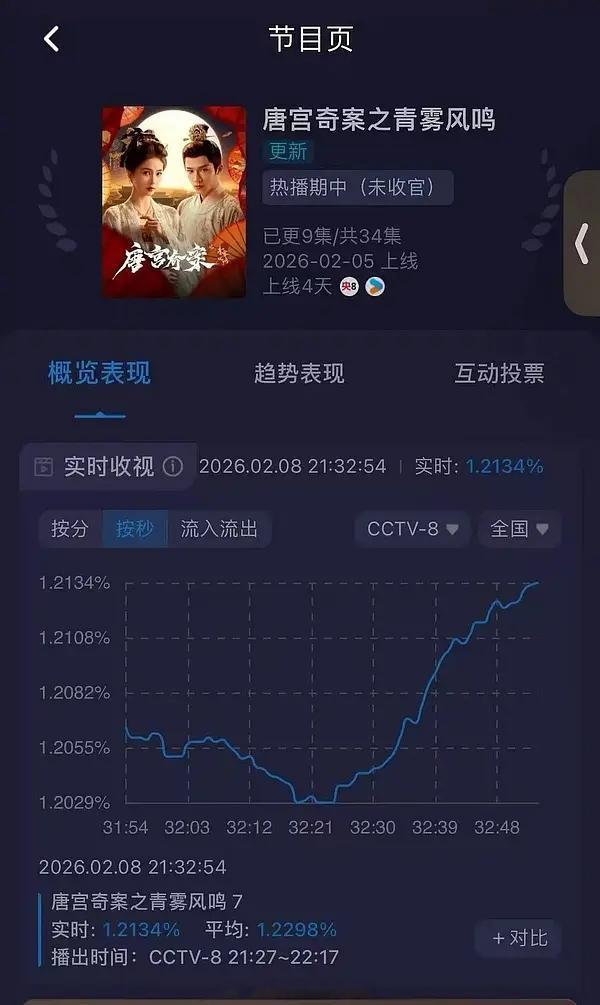 白鹿唐宫奇案今晚酷云收视率涨的也不错