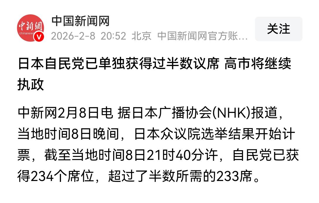 [吃瓜群众]高市果然赢了,日本“主流民意”便是如此…也好,也好