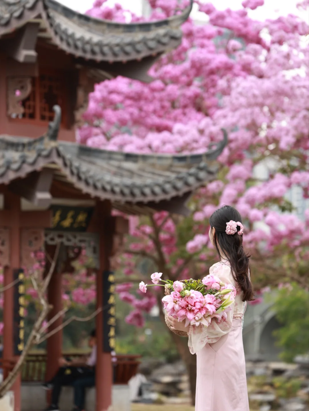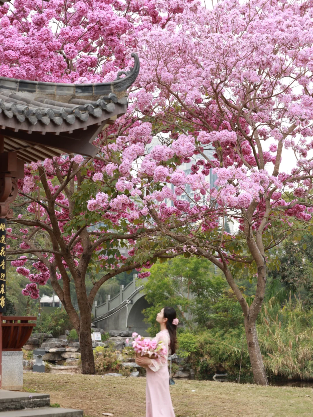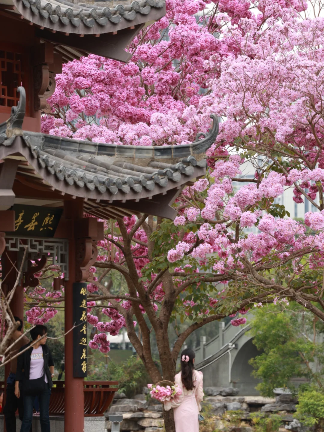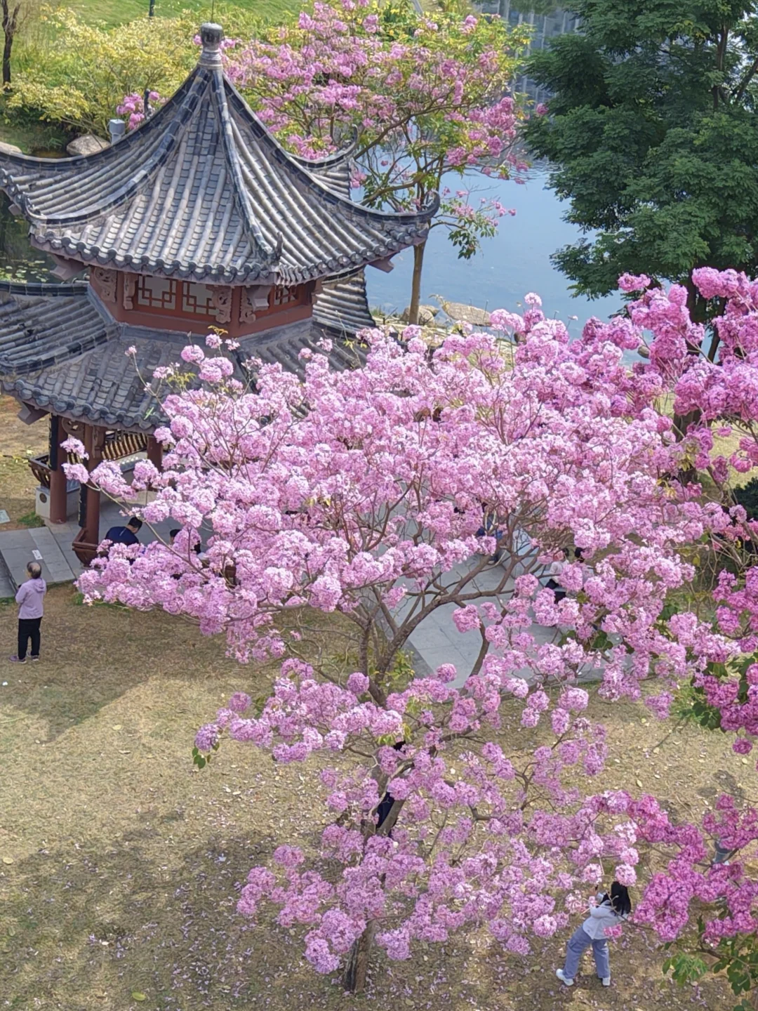 📍:四海公园 交通🚉:四海地铁站A出口,步行🚶900米 🌸紫花风铃木在亭子周围形成一幅古画,永远要相信老祖宗的审美~ 但是只有两三棵树 介意的朋友请犹豫[萌萌哒R][萌萌哒R]