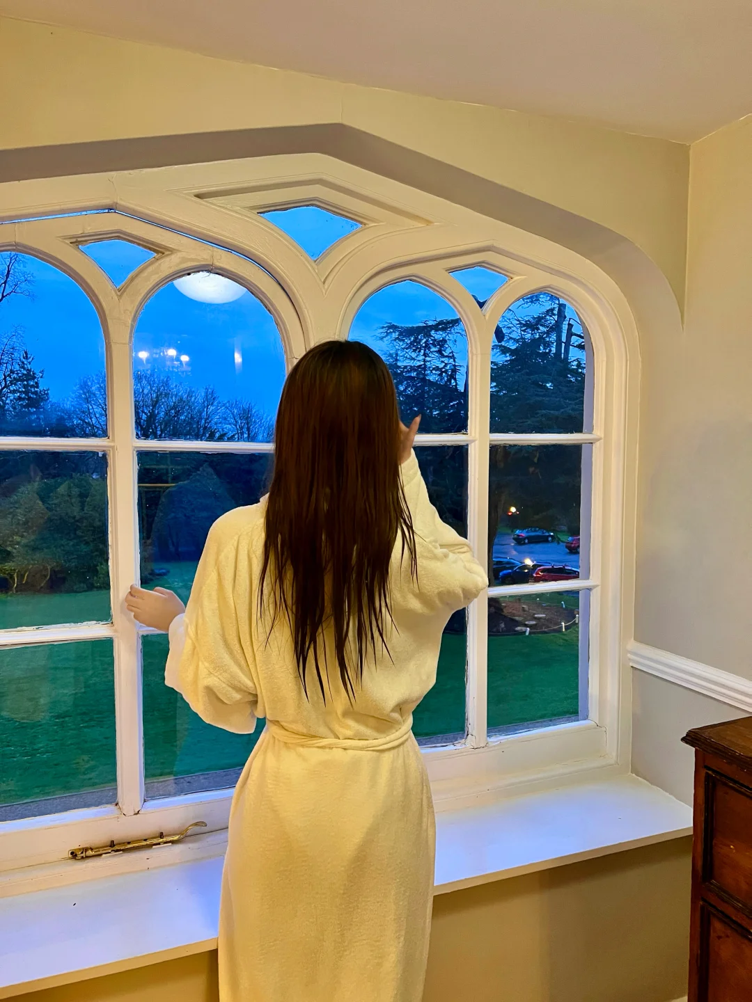 最近生日,酒店还用毛巾叠了蛋糕🎂送了巧克力~ spa里没有人,我和朋友泡得很舒服 看着旁边的森林和袍子、松鼠,英国的乡村太巴适了! 浴池可以开启按摩功能 桑拿房也好舒服🔥🪵冬天凉凉的关节变得暖暖的