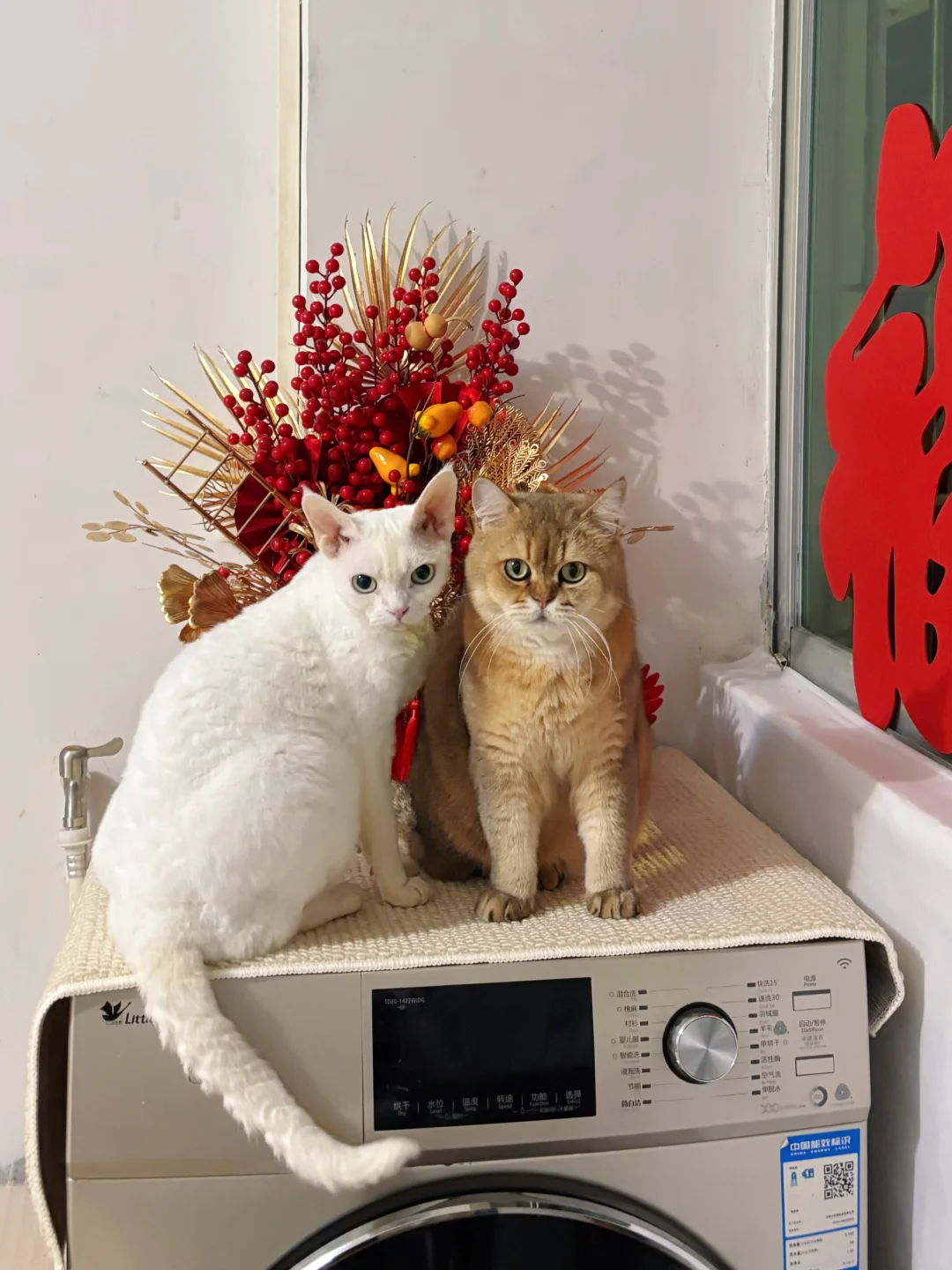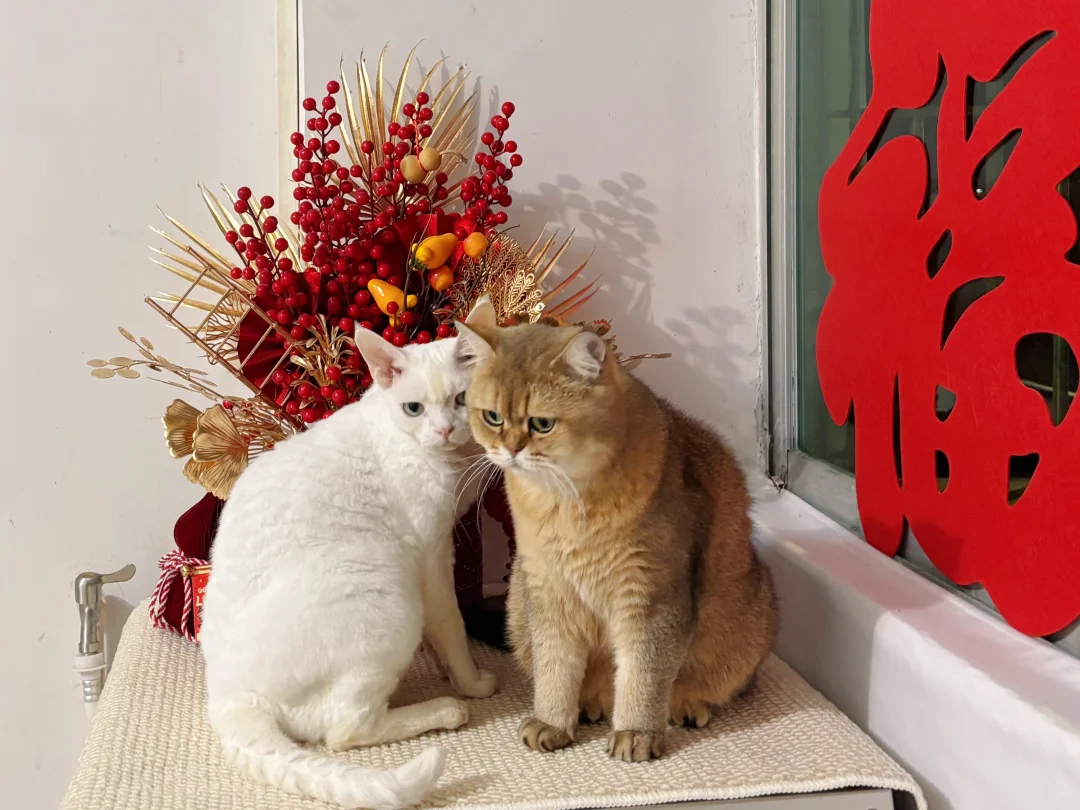 猫咪 我家宠物好可爱 多猫家庭 德文卷毛猫 好好过年大赏 好像不太聪明的样子 过年氛围
