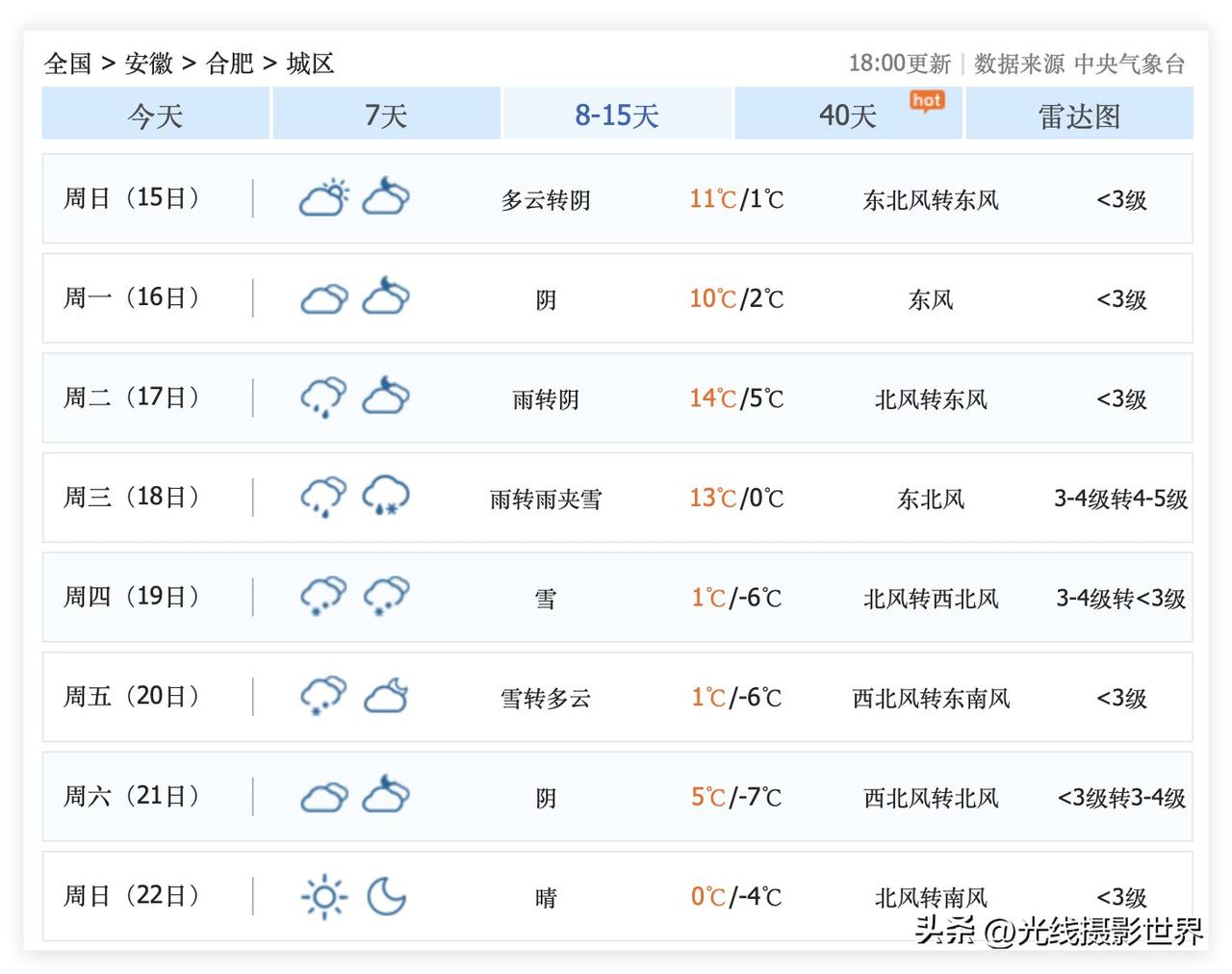 万万没想到啊!春节假期,安徽省合肥市,可能会下雪!2月10日到23日,合肥市,可能会真的经历一轮超级刺激的过山车天气!快速回暖之后,可能会被超强冷空气速冻! 2月10日到14日,合肥市,快速回暖,最高气温18度! …… 2月15日到22日,合肥市,将会被超强冷空气速冻,寒潮南下,合肥市可能会下雪! 2月19日,大年初四,合肥下雪,气温暴跌至1度到-6度,零下6度啊! 就问你敢不敢看合肥市的中长期天气预报大趋势啊! 当然,还早,天气预报还只是天气预报,这只是说明,可能存在这种可能性! 目前,超级计算机对于北京、天津、石家庄、上海、南京、杭州、广州、深圳的中长期天气预报都惊人一致!春节假期期间,可能会有超强冷空气南下!这个大趋势……可能是真的! 大家要密切关注最新天气预报,按照最坏情况来设想和应对!