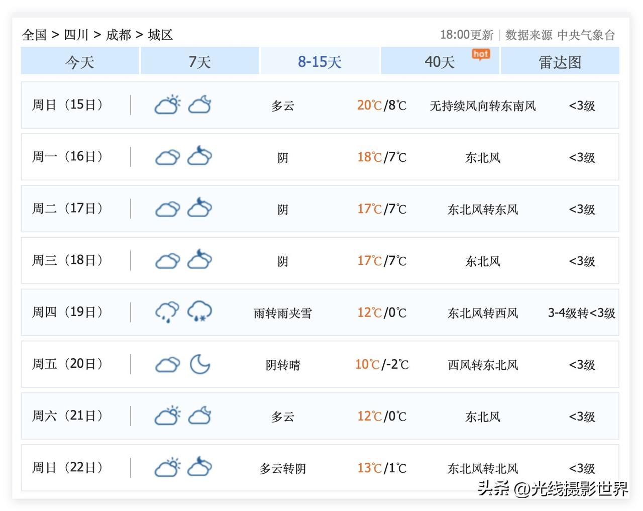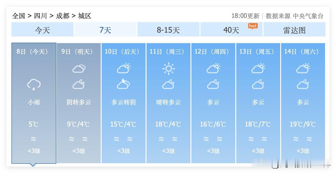 2月9日到22日,四川省成都市,将会迎来新一轮过山车天气,快速回暖之后,将会迎来大降温……具体来说,超级计算机认为,2月9日到18日,成都天气,总体来说是非常不错的,经常有阳光,气温迅速回暖,最高气温冲刺20度! 但是,2月19日到22日,成都气温将会明显下降……最低气温可能跌至0度左右…… 好吧,尤其是2月11日到16日,成都市,非常非常温暖……按照持续5天的日均气温大于10度的标准……也许,2月11日就是成都市今年正式进入春天的第一天……让我们拭目以待吧! 最后,2月9日到18日,成都市几乎不下雨……因此,2月15日16日,成都空气质量,可能会堪忧……除夕夜的成都及四川盆地、成渝经济圈……空气质量…… 好在,2月19日,成都可能雨转雨夹雪……因此,即便是2月15日16日的成都空气质量不太好……但是……也不必担心太久!