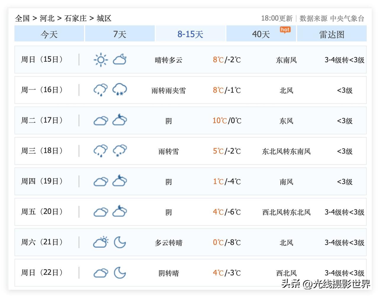 我的个天啊!春节假期假期,北京,天津,石家庄,京津冀可能会下雪啊!虽然2月10日到14日,北京市快速回暖,最高气温12度……但是,超级计算机认为,2月15日到22日,可能会有强冷空气南下……不仅仅横扫京津冀……目前给出的杭州上海南京的春节假期的天气预报大趋势……也是同样如此!寒潮可能会春节假期南下啊! 2月18日,石家庄可能会下雪! 2月19日,北京可能会下雪! 2月20日,天津可可能会下雪! 好吧,目前,中长期天气预报大趋势……春节假期期间,2月16日除夕夜之后的天气预报……不容乐观啊!