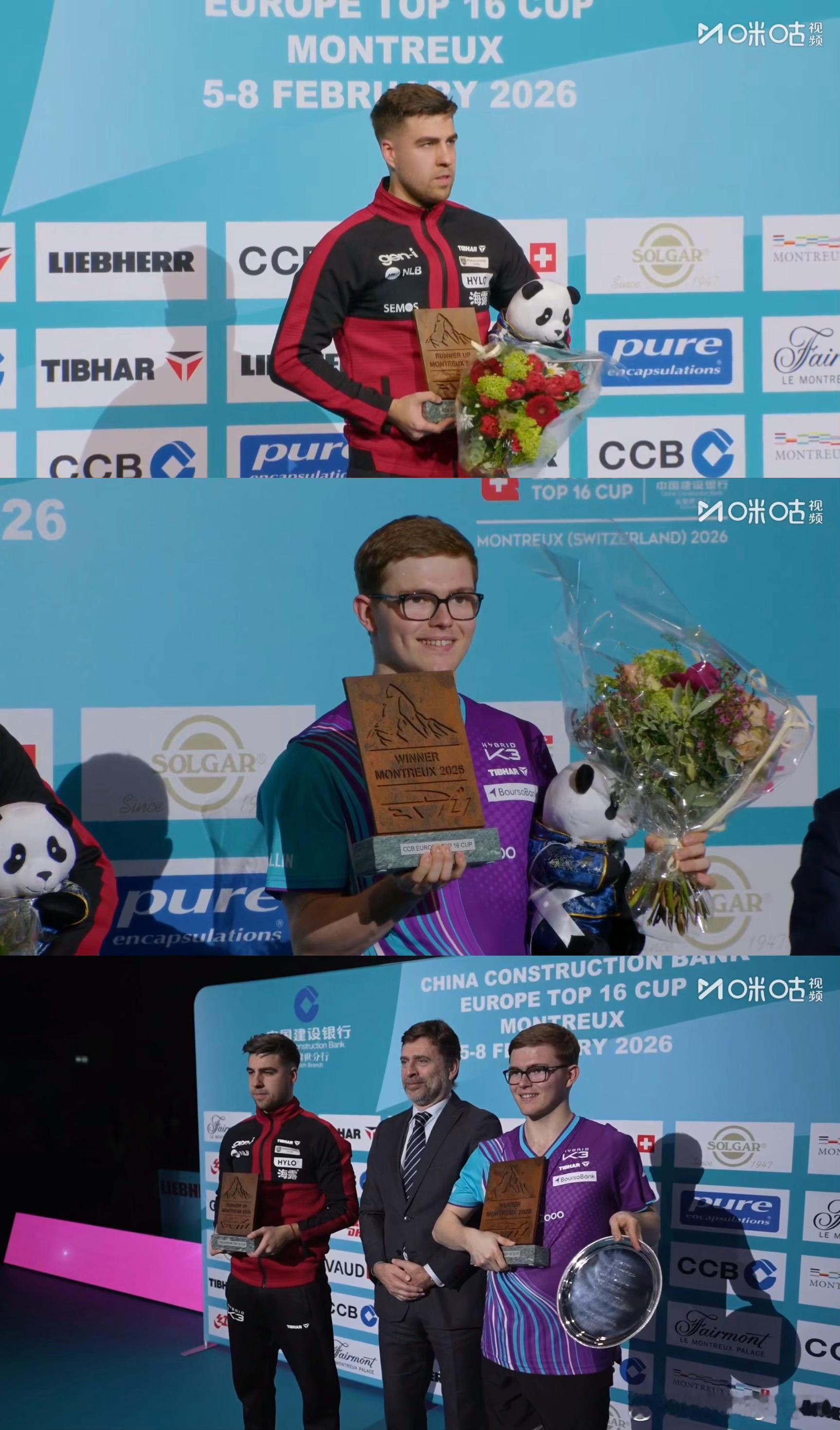 2026欧洲16强杯 男单颁奖仪式冠军🇫🇷艾利克斯·勒布伦🥇亚军🇸🇮达