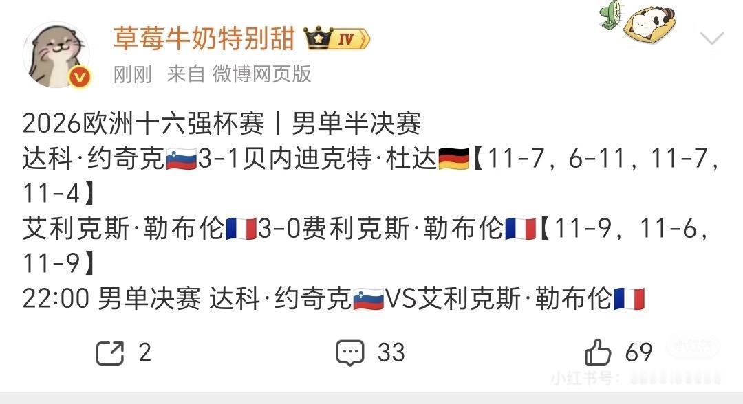 恭喜大勒布朗3:1达科夺得欧洲16强杯冠军🏆! 2月8日晚,欧洲16强杯 男单