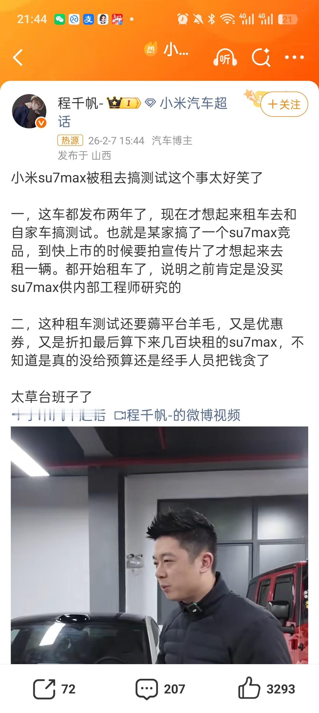 小米租车测试引争议渣浪主打的就是看热闹不嫌事大!明明是别的车企租小米汽车,怎么就成了小米租车?别问为什么?问就是小米热度高,不蹭白不蹭!