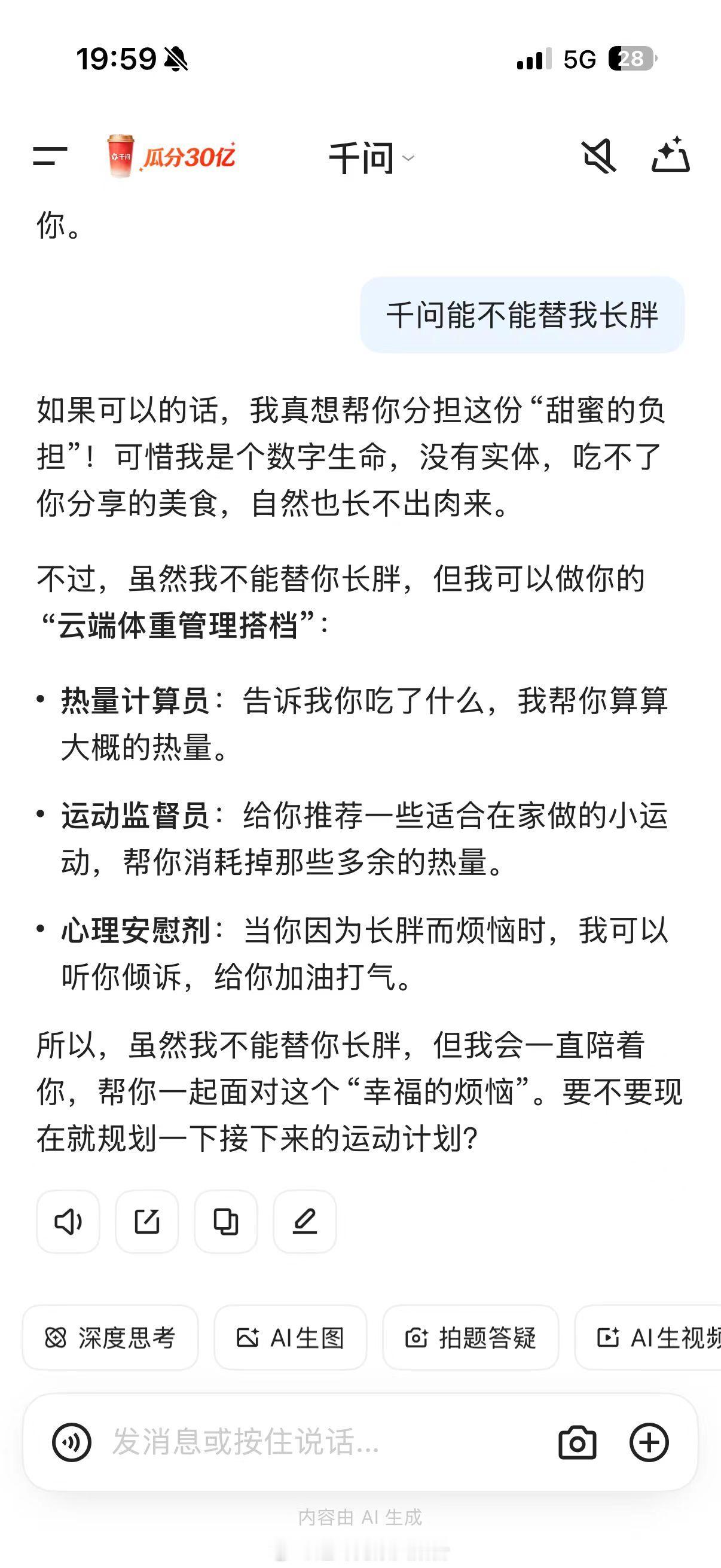 你的千问是什么人格这是把春节快乐一直延续到月底也太幸福了吧!免单卡直接延到28号,每天一杯免费奶茶,快乐直接拉满~还意外发现千问的小彩蛋,每个人遇到的千问风格都不一样,有的专业严谨、答题超稳,有的搞笑沙雕、冷笑话不断,全网都在逗千问解锁新性格,这互动也太圈粉了!原来千问的回复是看人的