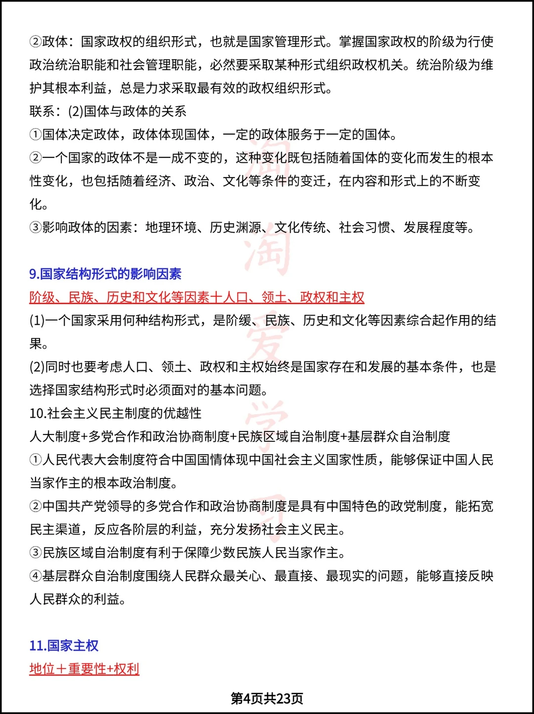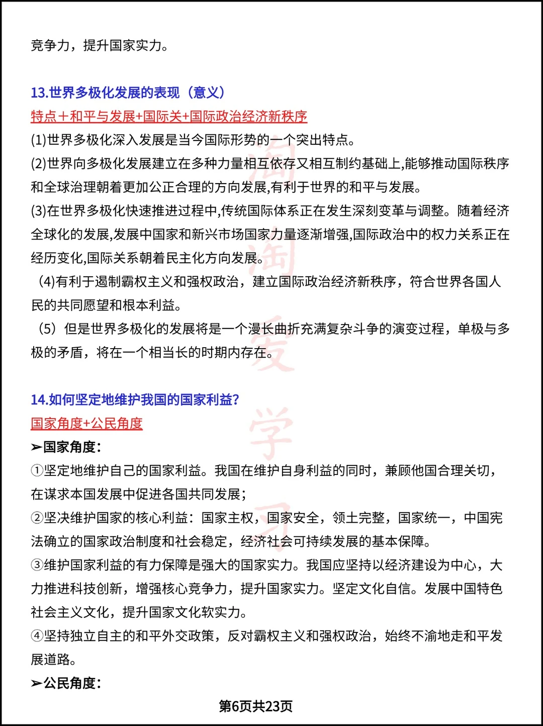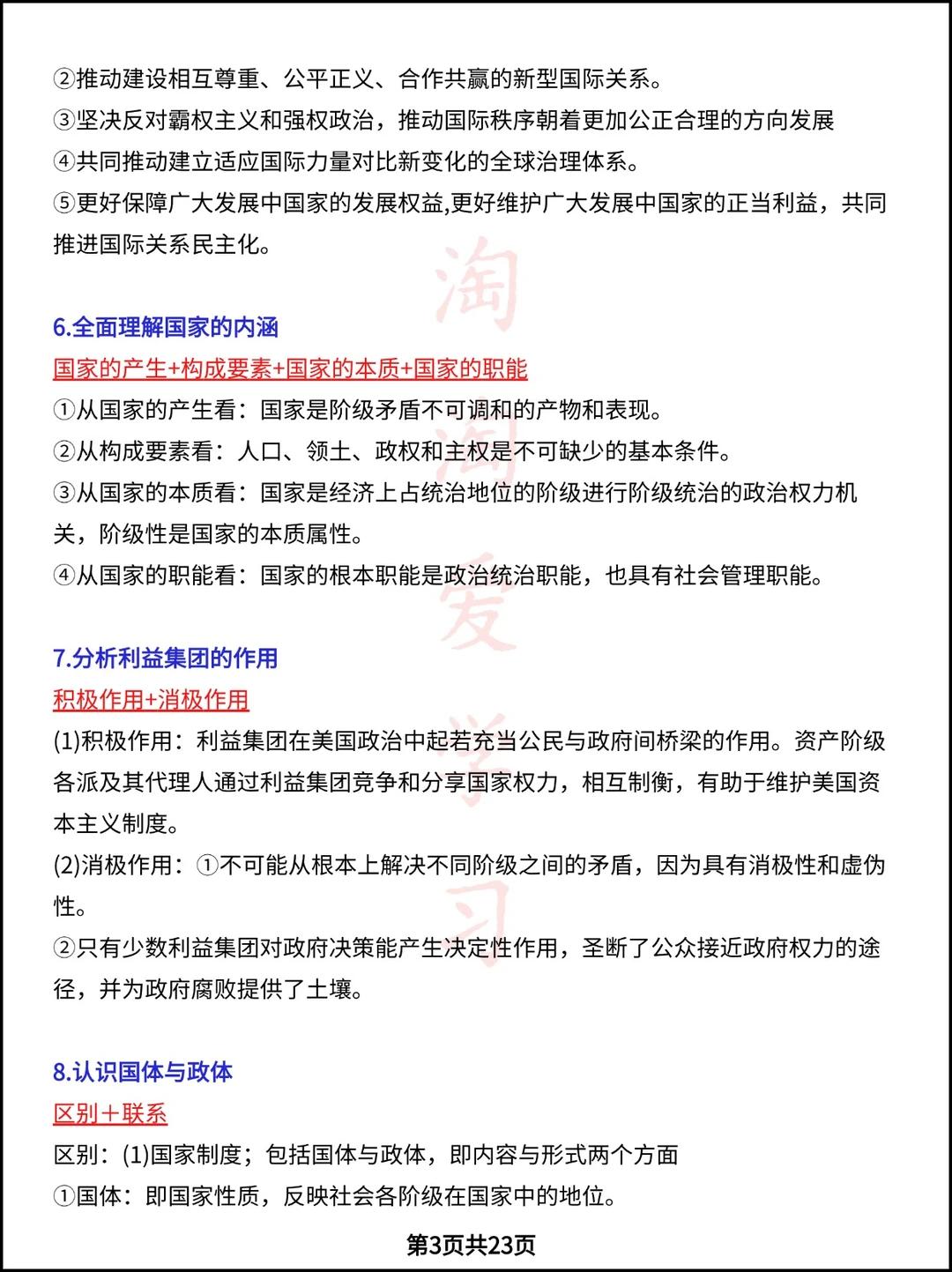 高中资料 高中政治笔记 高考政治 政治资料 高中政治选一政治 答题模板 高考冲刺 学霸秘籍 政治提分
