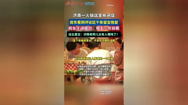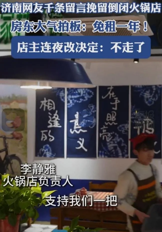 你见过被网友“骂”着不让倒闭的店吗?就在刚刚过去的24小时,济南宽厚里上演了一幕现实版的“双向奔赴”。一家默默无闻的火锅店,因为发了一张闭店通知,意外引爆全网泪点,上千条留言刷屏挽留,更神奇的是,连高冷的房东都被感动,直接拍板:一年房租免了!这究竟是怎样的一家神仙店铺,竟能换来整座城的温柔托举? 故事的开头,是无数餐饮人的辛酸。这家开了五年的老店,因为成本上涨、客流波动,账本实在算不过来,老板含泪贴出了闭店告示,准备默默退场。本以为是一次无人问津的告别,没想到却戳中了无数老饕的泪腺。评论区瞬间炸锅,上千条留言像潮水般涌来:“从小吃到大,你关了我上哪吃去?”“老板别走,以后我每周都来照顾生意!”这些滚烫的文字,不再是简单的消费评价,而是一座城市对烟火气的深情挽留。 而这股暖流,恰恰被房东大哥刷到了。这位在宽厚里拥有多处房产的“包租公”,平日里与租客保持着礼貌的距离,但这一次,他破例了。看着满屏的不舍与支持,他做出了一个让所有人意想不到的决定——免除该店一年房租!十几万甚至几十万的租金说免就免,这不仅仅是雪中送炭,更是一种格局的体现。正如房东所言:“能被这么多人挽留的店,一定有它的价值。留住诚信的租客,比收一年房租更划算。” 这一波神反转,直接把老板整破防了。接到电话时,他愣在原地,半晌说不出话。原本以为是终点,没想到却是新生。连夜,他撤下了闭店通知,换上了“本店存活中”的招牌,斩钉截铁地宣布:“不走了!”这三个字,重若千钧,它承载着网友的期待,房东的善意,更承载着这座城市独有的宽厚与温情。 但这还没完,网友们的行动力才是最强的后盾。消息传出后,无数人自发前往打卡,用脚投票,用胃支持。原本冷清的店面重新排起了长队,热气腾腾的火锅里,煮的不再是简单的食材,而是人与人之间最纯粹的善意与信任。 有人说,这是现实版的童话。但在我看来,这正是商业最本真的模样。当一家店用心对待顾客,顾客自然会用真心回馈;当房东懂得体谅租客的不易,这份情谊便会转化为更长久的稳定与信任。这不仅仅是一次免租,更是一次关于“信任投资”的共赢。 在这个快节奏的时代,我们习惯了冰冷的契约和无情的优胜劣汰。但济南的这个故事告诉我们,温情从未走远。它藏在老顾客的回忆里,藏在房东的大气里,更藏在那口翻滚的红油锅底里。 你身边有这样充满人情味的“宝藏店铺”吗?你愿意为一份情怀和味道,去支持一家陷入困境的小店吗?