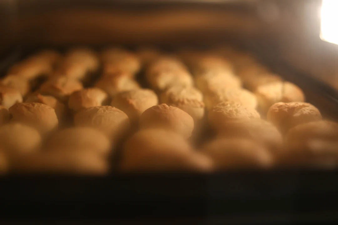 我之前看过一篇关于胶东风俗的文章,里面记载的是有些地方的巧果是入油锅炸的,金黄酥脆,现在可能也是迎合健康的概念,少盐少油,普遍都是用烤箱或者平底锅做。