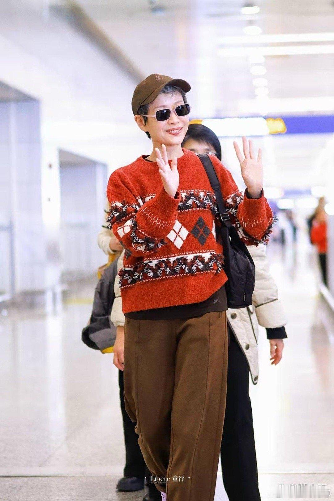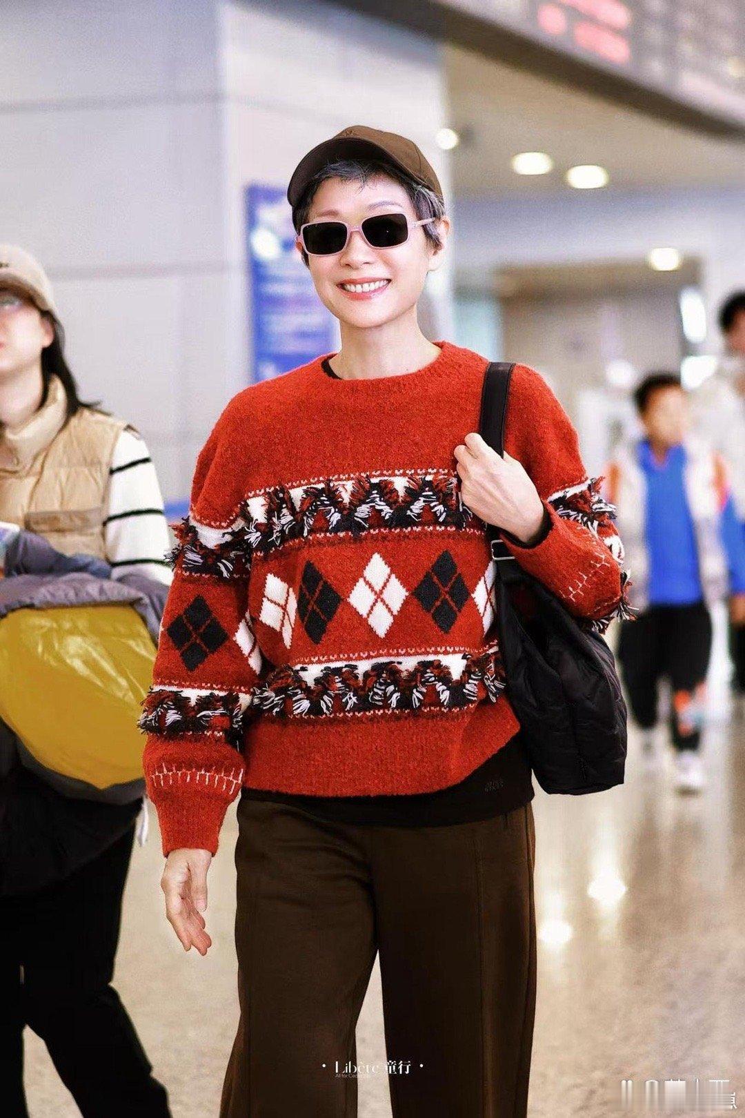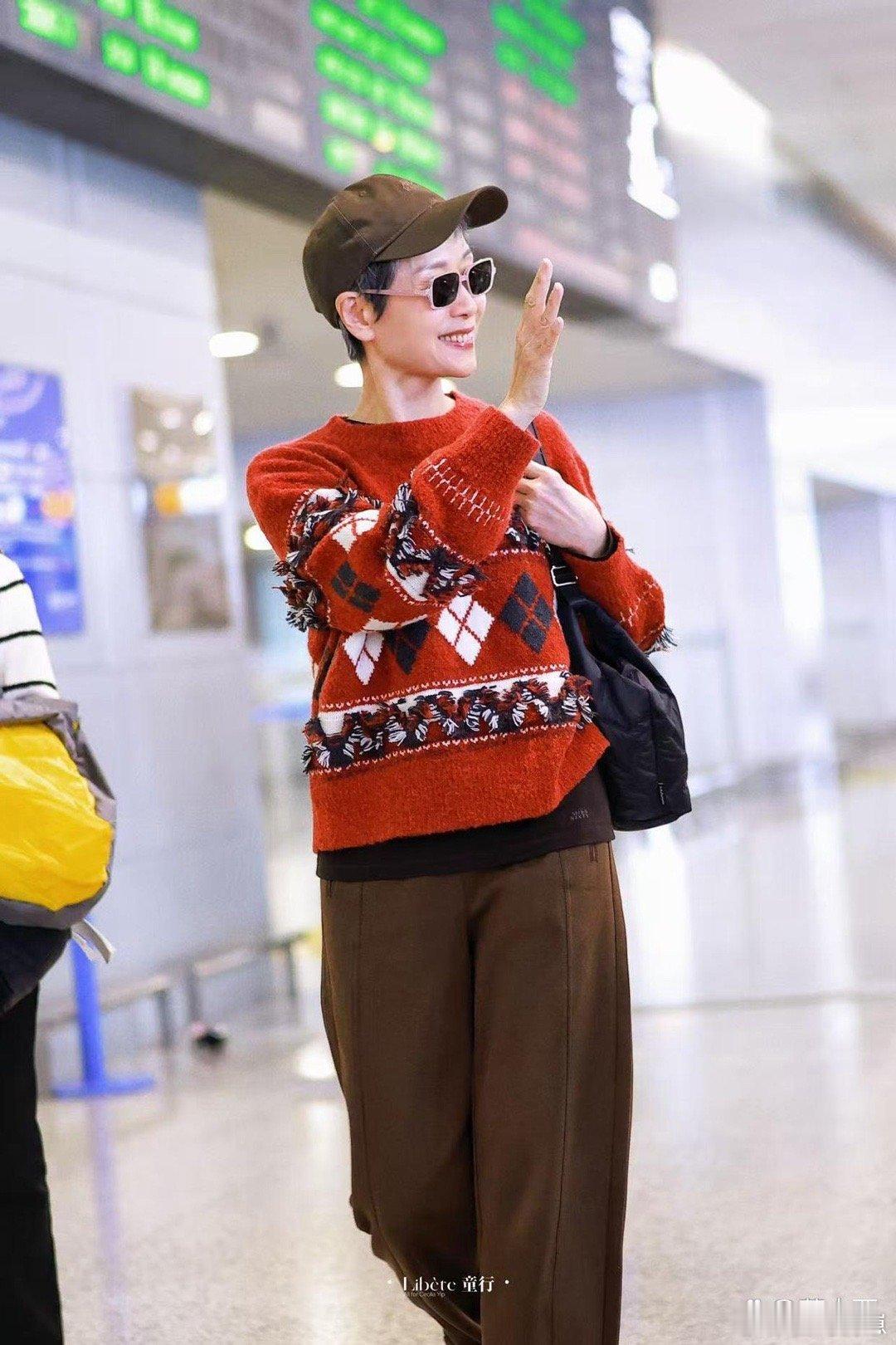 叶童老年穿搭也太会了!红色提花毛衣搭配棕色阔腿裤,配色雅致又显气质,减龄不失高级感,时髦度拉满✨