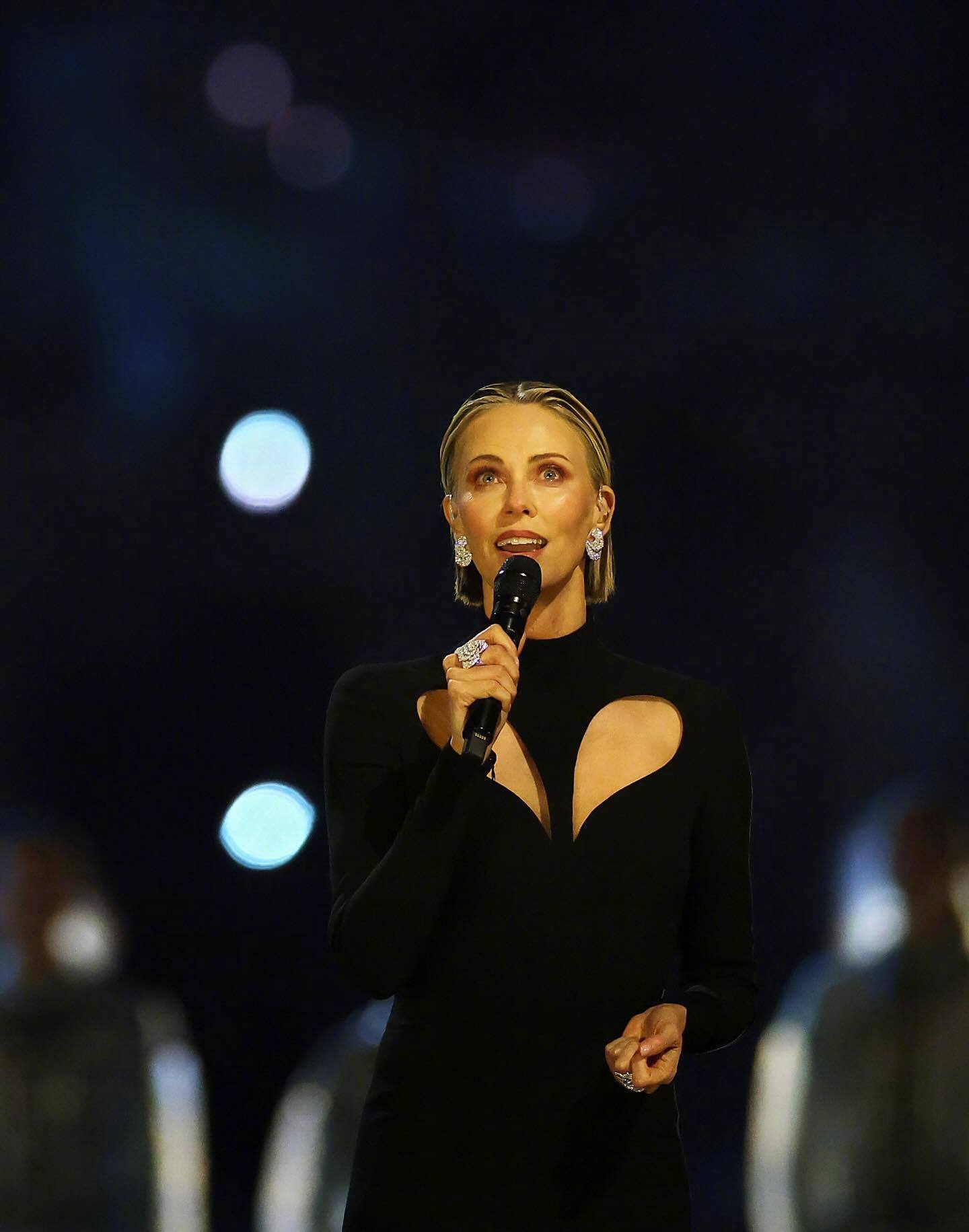 查理兹·塞隆以联合国和平大使的身份亮相米兰冬奥会开幕式。