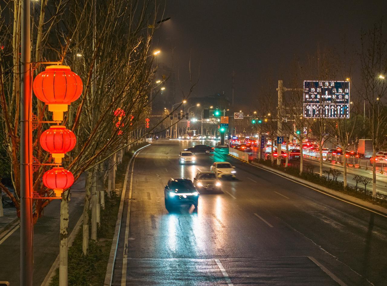 红灯笼串起了夜色,也串起了即将到来的新年喜悦。