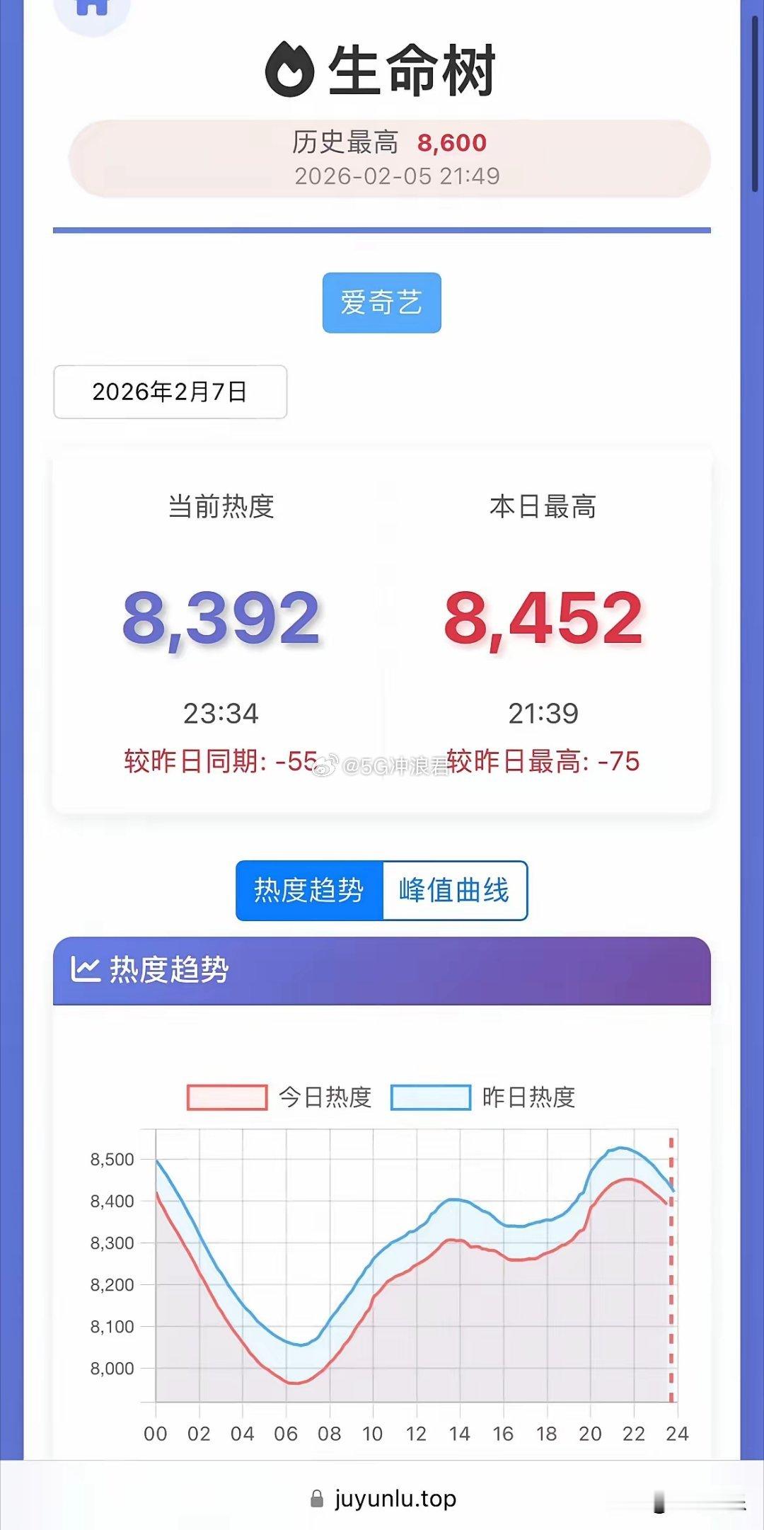 《生命树》热度又降了…已经连续降了两天,在周末这个升热度最好的时间,《生命树》今天最高热度在8452,较前一日降了75,周六一天热度都在降。按照目前的走势,《生命树》想破9000需要有爆点,引起观众的讨论,热度才能再度起来!杨紫这部转型大剧应该是她近年数据比较垫底的剧集,不知道会不会影响她后续接剧的思路。