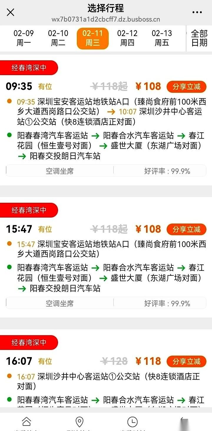 这年头,傻子才会坐顺风车,还不如大巴车。我在龙华住,回阳春去竹村地铁站等就好了。