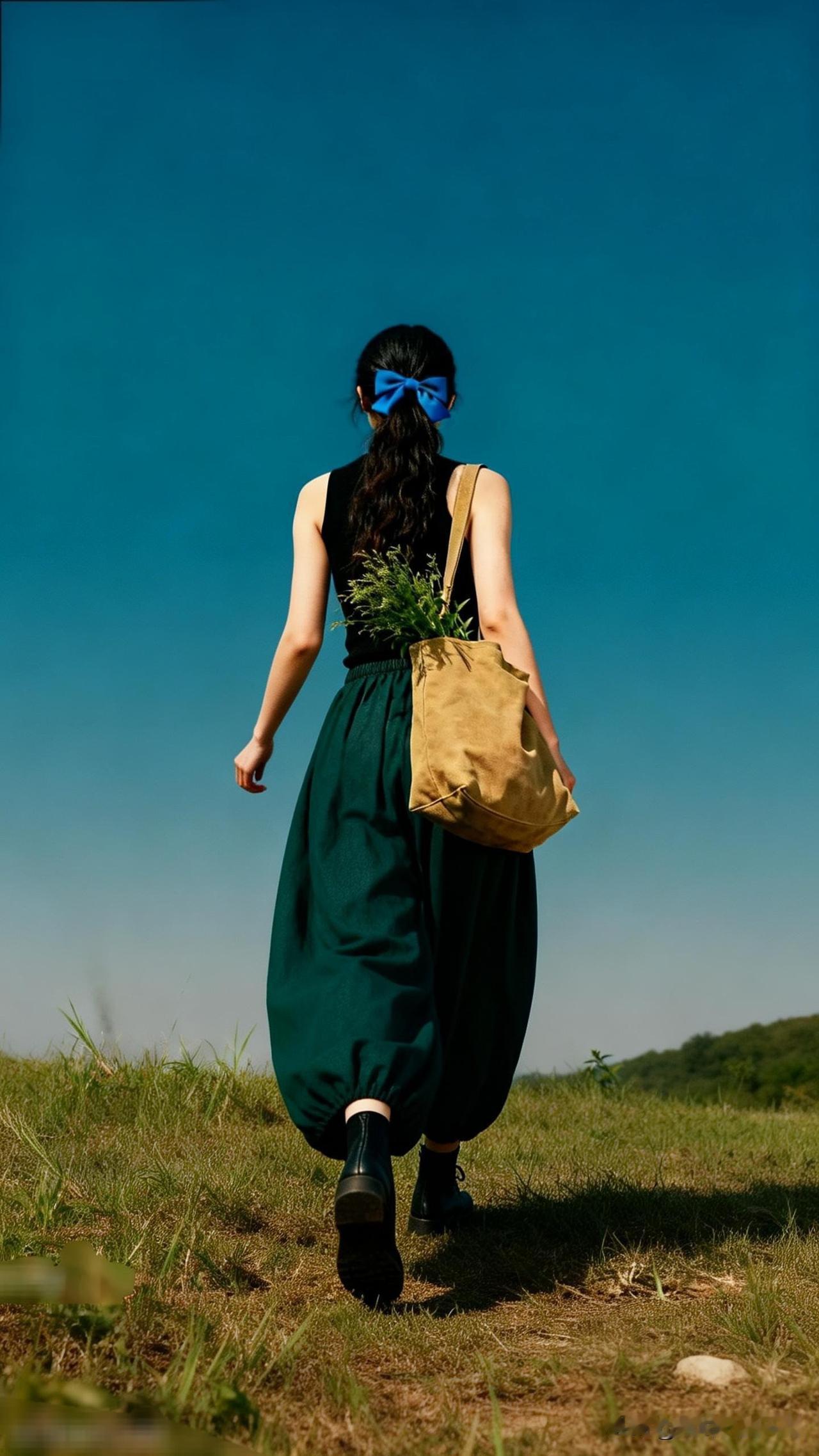 夏日穿搭指南:复古风连衣裙+草编包,轻松自在漫步在田野间。随手一拍的氛围感