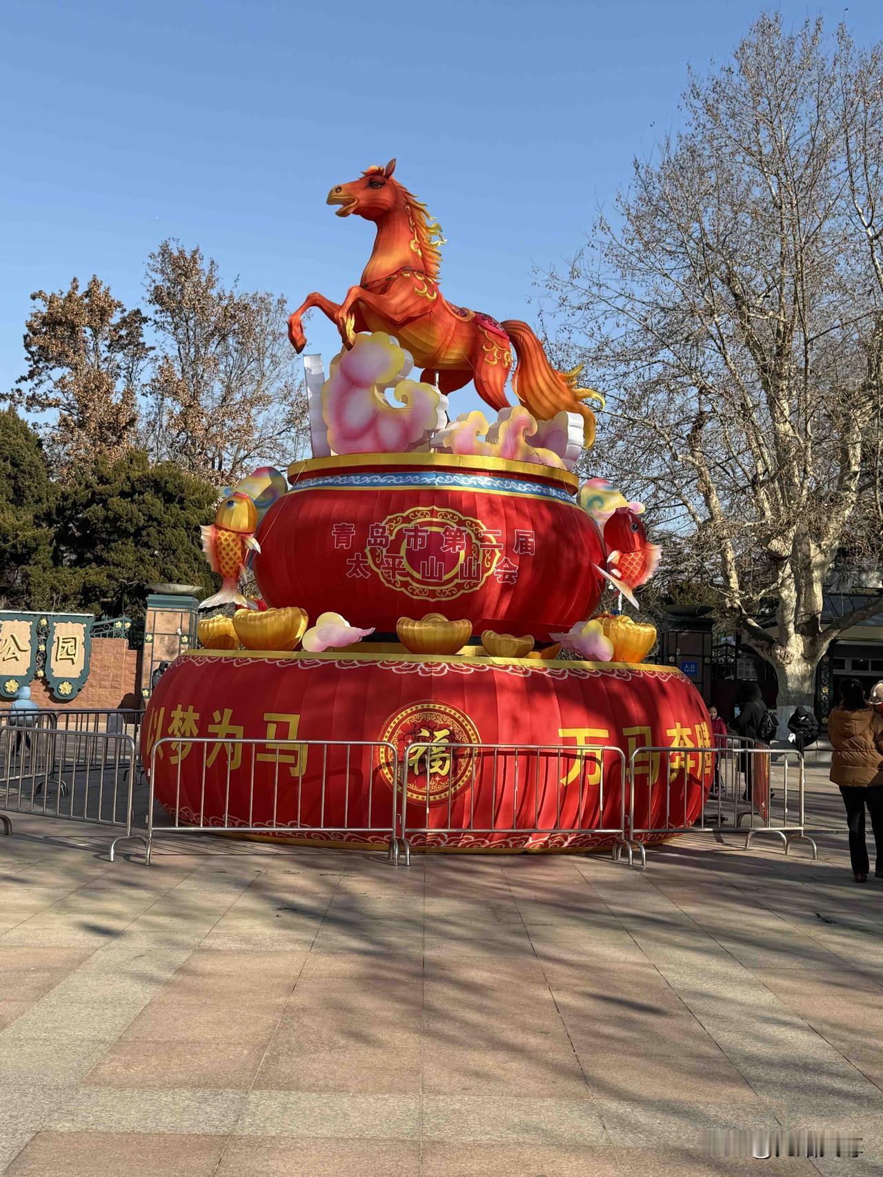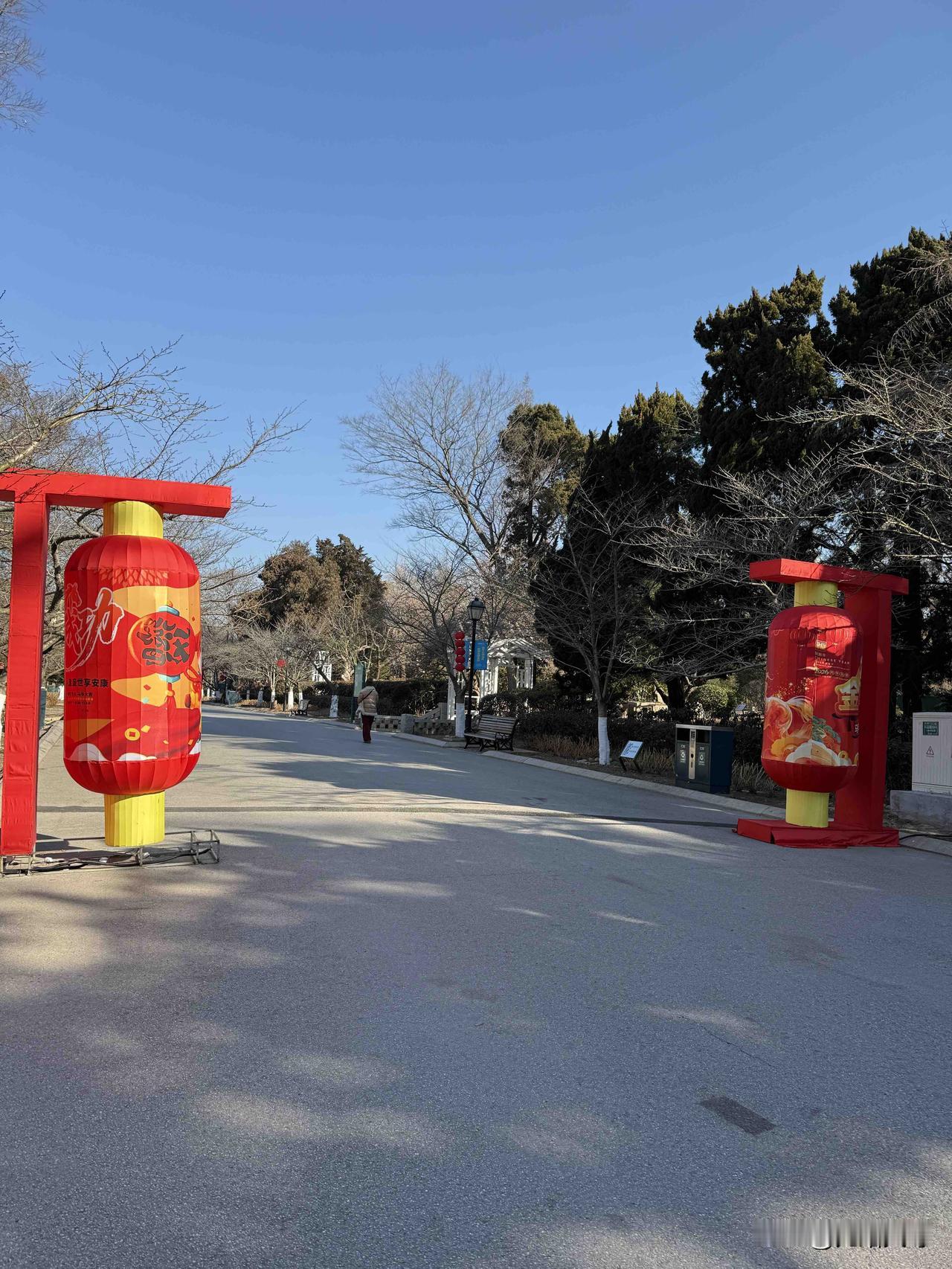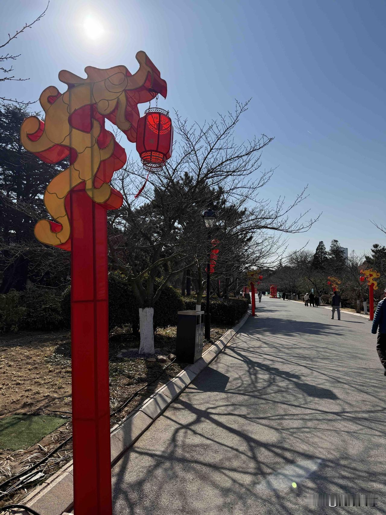 昨天上午我去了青岛中山公园打卡,我从南大门进来的看到大门口的标志性的灯像换成了马年的灯像,公园里也挂起大红灯笼来了,明天是腊月二十三了是小年也是灯会的开幕了,再有一周的时间就过春节了,来唱歌跳舞的人不多,只有跳交谊舞的健身的抖空竹的排球的还有百合艺术团的人都来了,我转了一圈最后走到北门就回家了,原创。