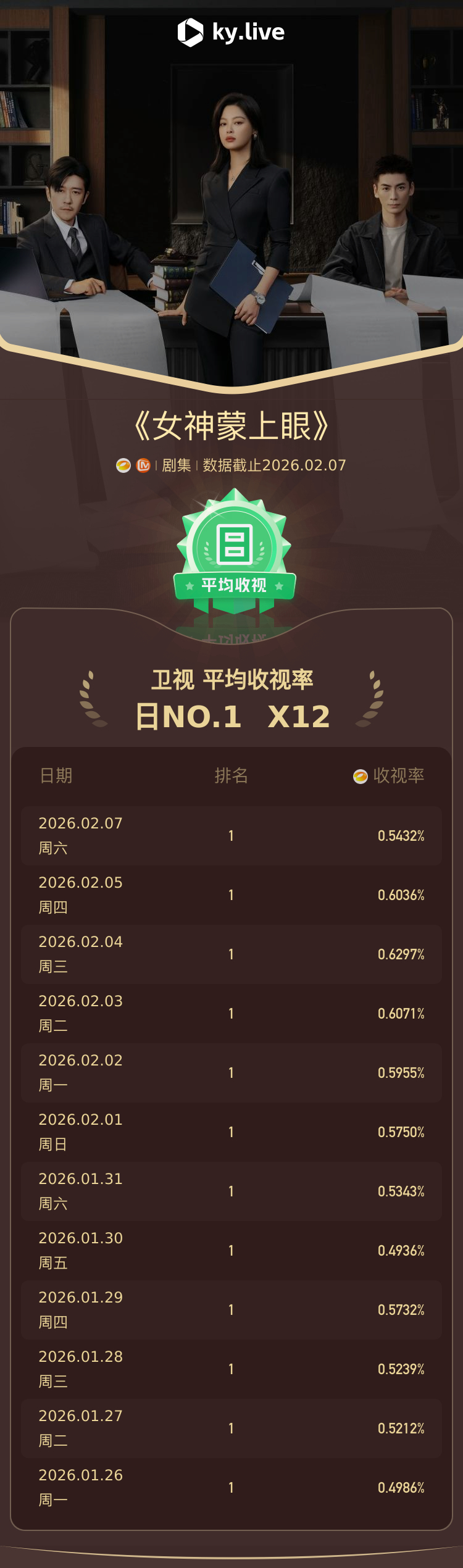 女神蒙上眼收视12连冠辛芷蕾新剧在湖南卫视12连冠女神蒙上眼 湖南卫视这波选剧绝了,《女神蒙上眼》直接拿下12个省级卫视收视第一!