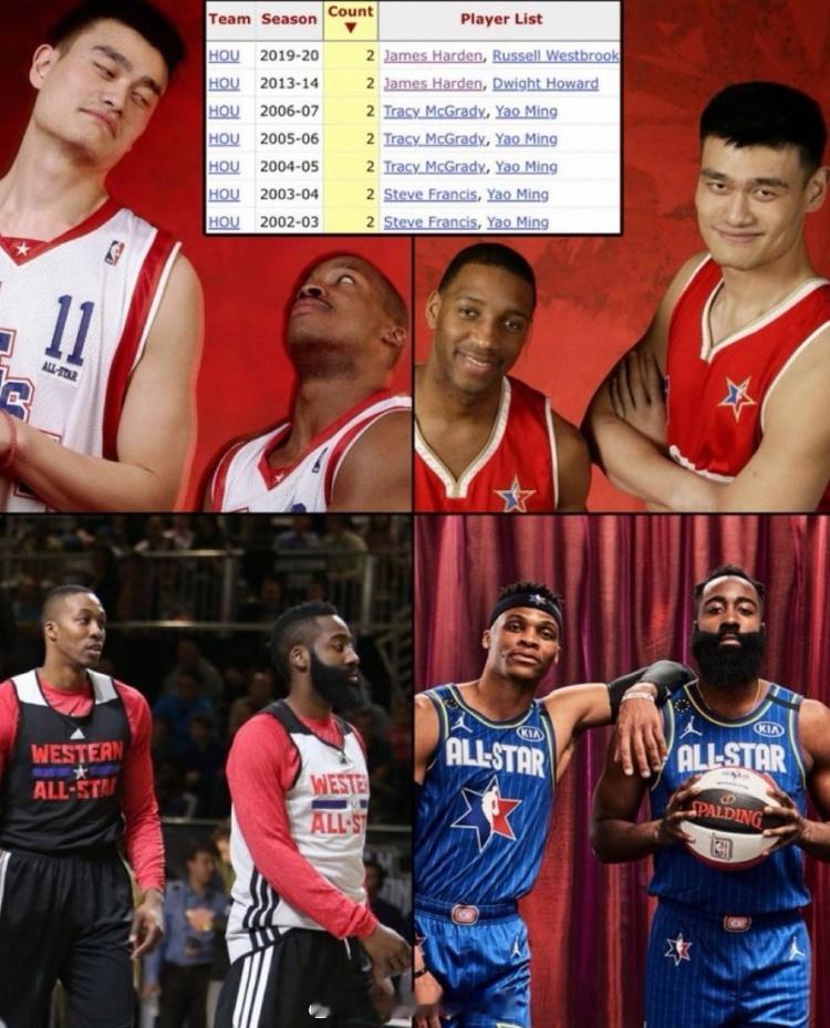 据统计,申京和杜兰特成为火箭队史自1997年以来第五对同赛季入选全明星的队友,此前四对分别是姚明/弗朗西斯、姚明/麦迪、哈登/霍华德、哈登/威少。