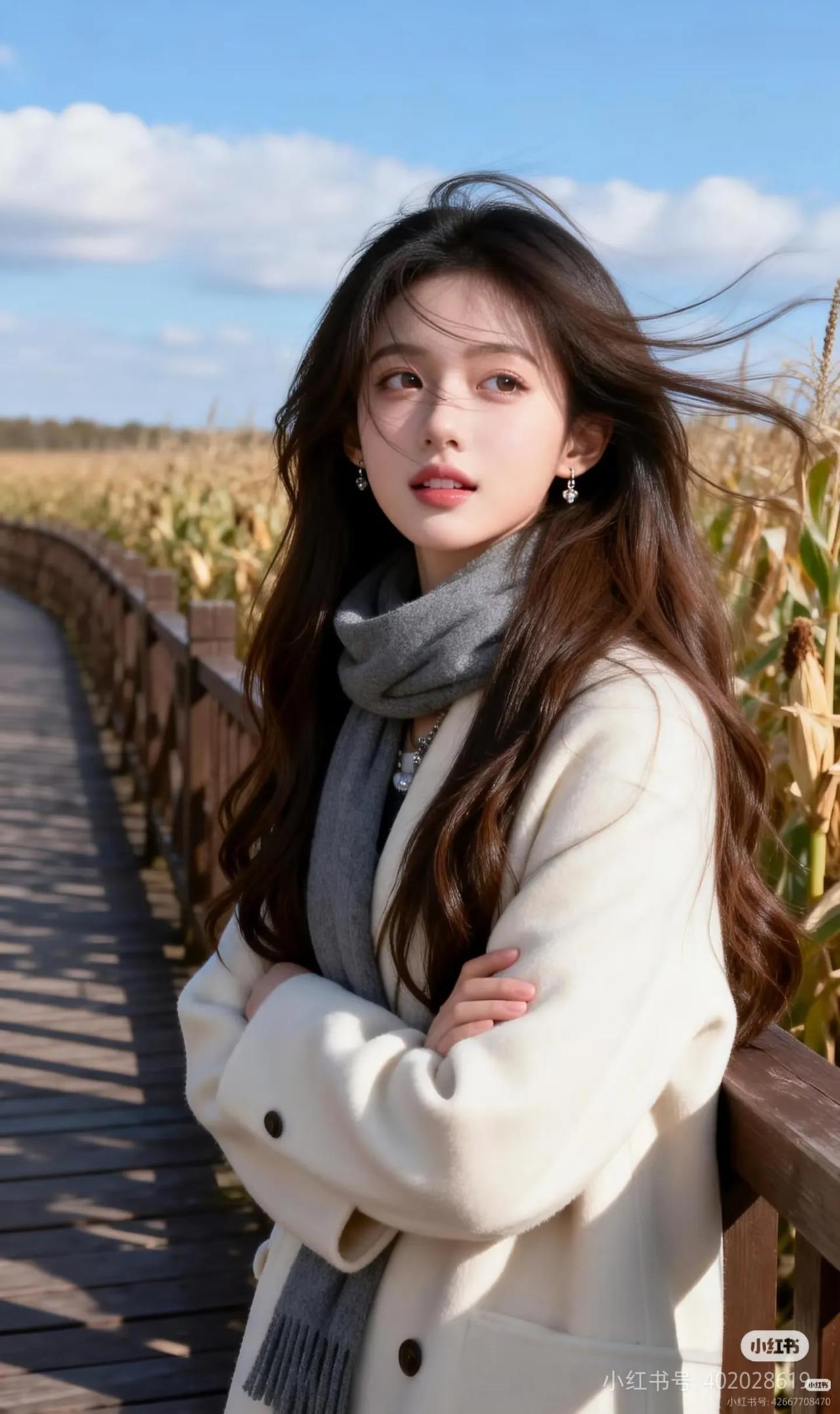秋日漫步,长裙飘飘,与自然共舞街拍高清美女