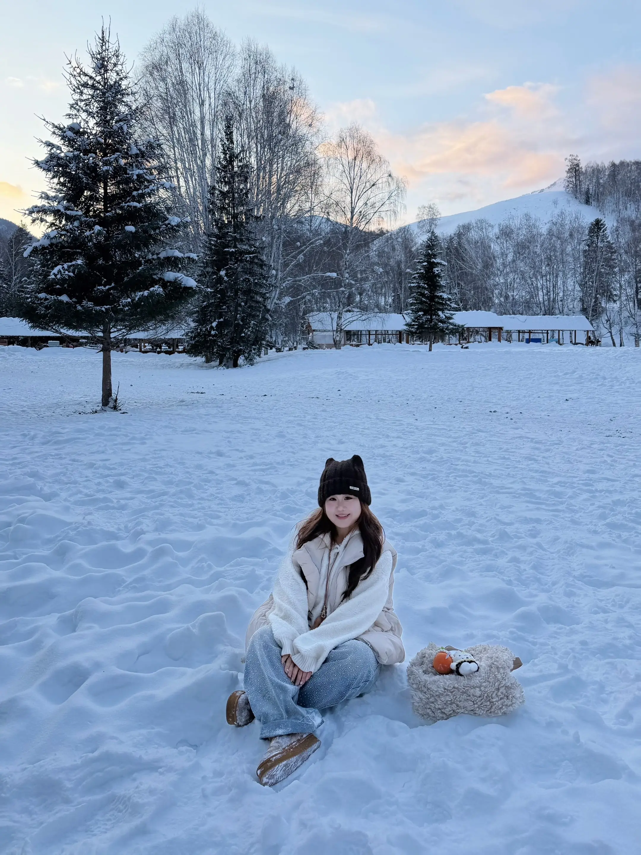 禾木的雪闪闪的 跟我的裤子好搭✨。