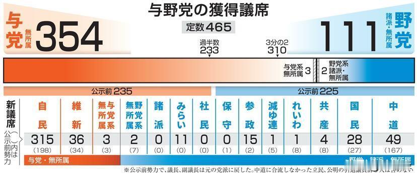 日本国会选举结果出炉,执政党联盟轻松拿下大半席位,自民党315席单独迈过三分之二