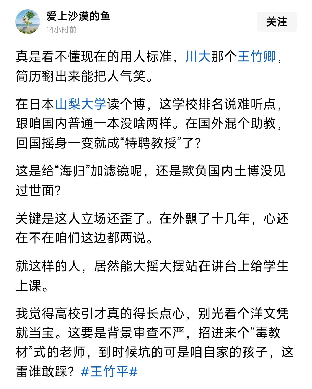在风口面前一头猪都能飞上天。 最大的问题是什么? 以前随便一块废柴就是宝, 现在很多宝都只能当废柴。 这种废柴赶上好时候了, 做什么事情都是赶上风口就好, 在风口面前一头猪都能飞上天, 当年真的把海龟都当成宝。 四川大学这位王教授就是赶上好时候了, 这种赶上好时候的人还挺多的, 运气好其实比你努力重要的多。