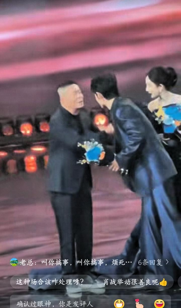 注意看,wb老总上台后,杨幂、肖战一开始并没动作,站的笔直没有动作,显得十分礼貌。随后出现了一个小插曲,老总的动作碰到了杨幂的裙摆,现场气氛瞬间变得有些微妙。 面对突发情况,杨幂很快做出回应,抬手做出邀请的手势,示意对方到中间位置。这个举动既得体又及时,用礼貌的方式化解了当下的尴尬,也展现出不错的临场应变能力。 一旁的肖战反应也很自然,主动走到两人中间,配合着一起邀请,既缓和了场面,也让流程更顺畅,待人接物的分寸感很到位。 而老总全程保持抬手示意的姿态,态度明确,没有过多缓和的表现,整体气场偏强势,和身边两人的温和形成了对比。 其实不管是什么场合,人与人相处最重要的就是互相尊重。身居高位者有自己的气场,明星艺人也有自己的职业素养,不同的处事方式,恰恰体现出不同的待人态度。 一个简单的互动,就能看出社交里的细节与修养。没有夸张的情节,却藏着最真实的为人处世之道。