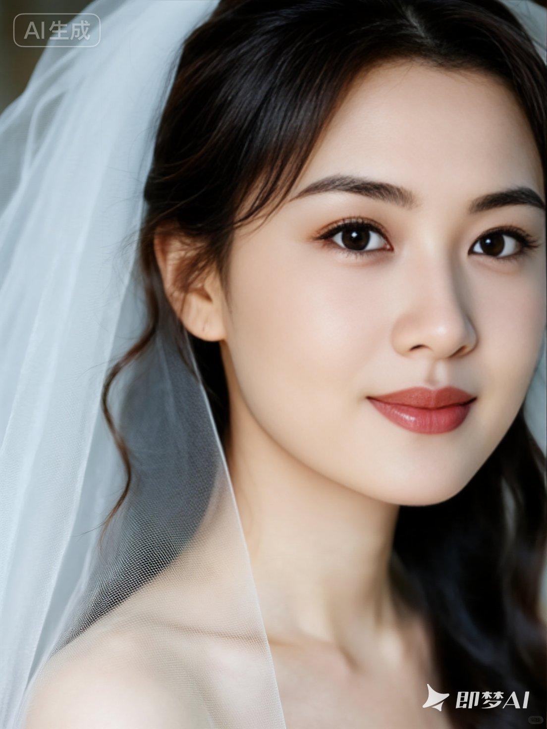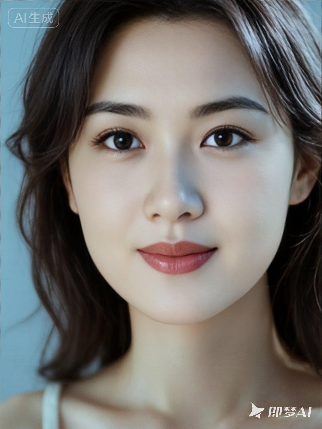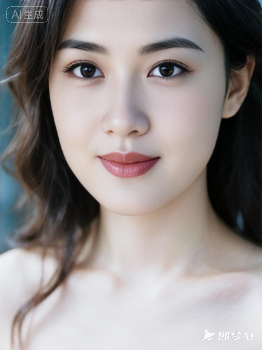 一位绝色美人,鹅蛋脸,玉骨冰肌,眼睛宛若秋水一般,清澈、明亮,肌肤胜雪,黑褐色长发微卷,绝美的容貌,朦胧美
