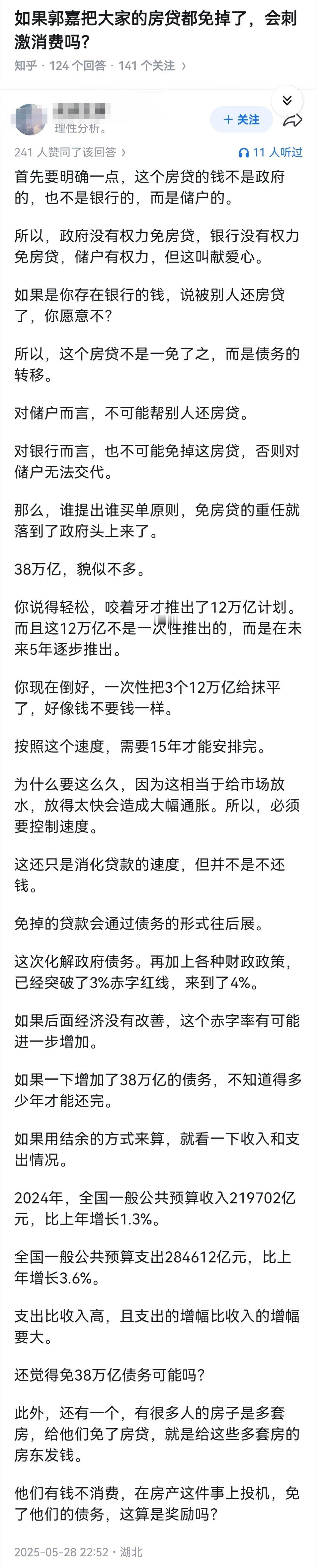 如果郭嘉把大家的房贷都免掉了,会刺激消费吗?