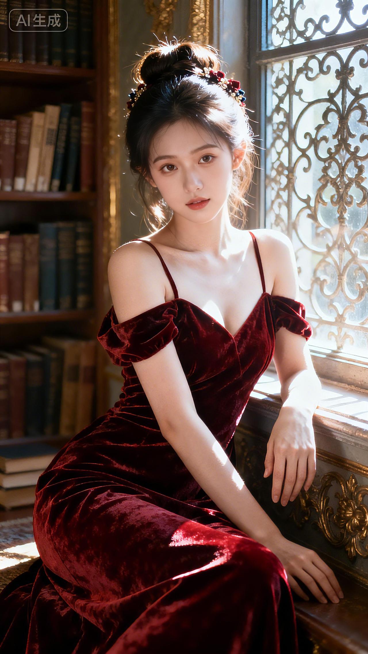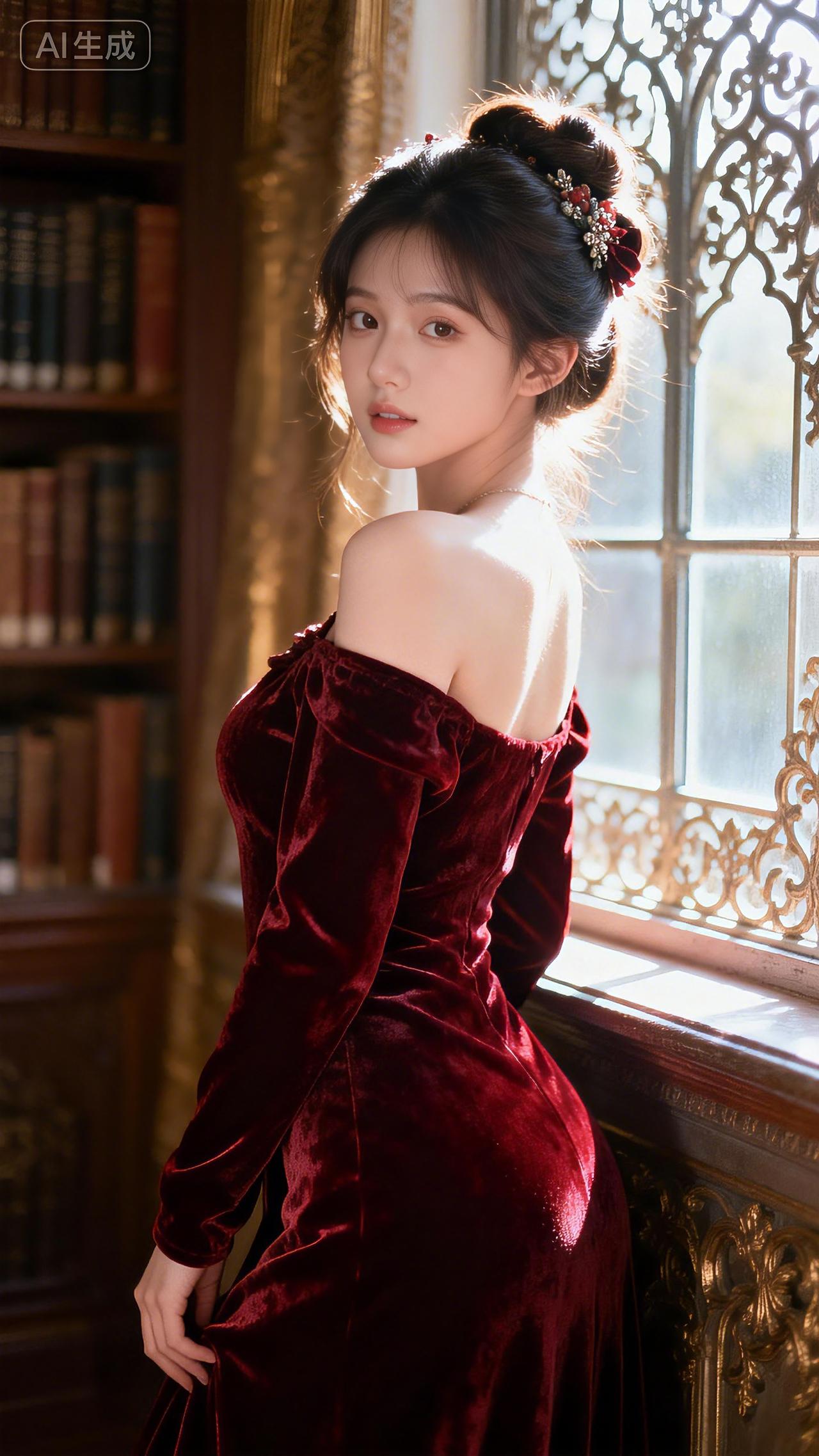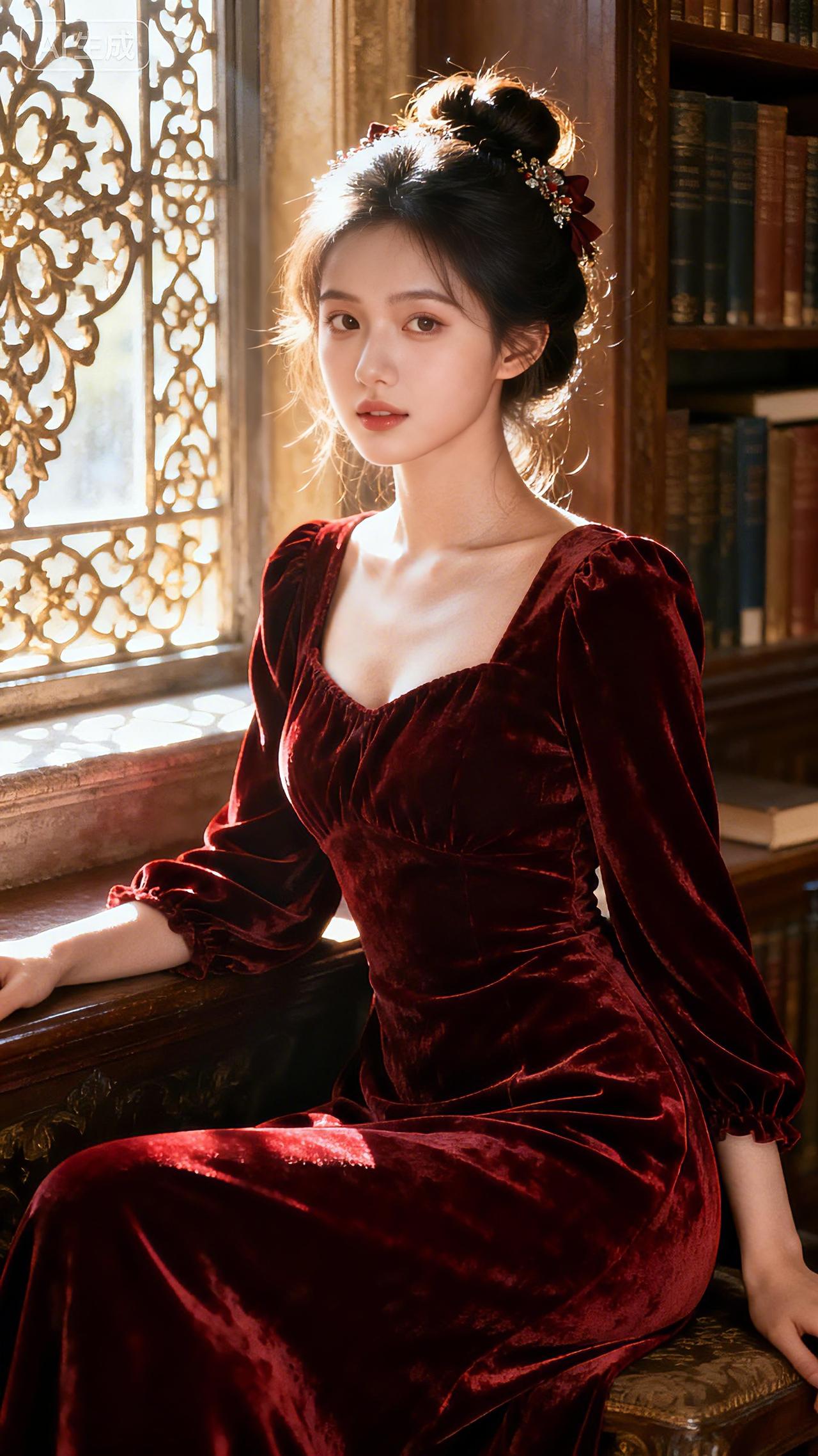 窗边红裙,光影交织,勾勒优雅瞬间。居家御姐壁纸分享 豆包 高清女壁纸 壁纸美女 壁纸