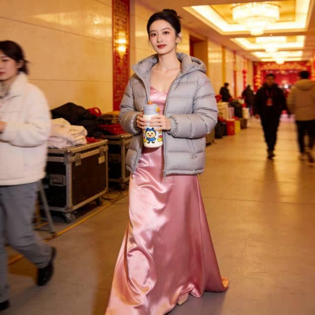 王玉雯春晚路透封神:粉缎裙的高级感,藏在芭蕾体态里 春晚联排路透里,王玉雯的粉色缎面长裙一出场就美上热搜,这份仙气从不是单纯靠颜值,而是细节与体态的完美契合。 高光泽缎面泛着珍珠般细腻光泽,粉色柔美元素被面料质感中和了甜腻,搭配低盘发与淡雅妆容,清冷中透着温婉。最妙的是反差感:外搭浅灰羽绒服兼顾保暖,手持卡通水杯添了几分松弛俏皮,打破了礼服的距离感。更难得的是她的芭蕾体态,172cm身姿舒展挺拔,裙摆随步伐流动,生图里的肩颈线条与腰臀比例,把缎面的垂坠感演绎得淋漓尽致 。 这也给普通人提了个醒:穿搭的高级感,一半靠选品,一半靠体态。不必盲目追爆款,练好挺拔身姿,再简单的单品也能穿出气场。王玉雯的造型恰好证明,真正的氛围感,是精致与真实的平衡。 你被这袭粉缎长裙惊艳到了吗?期待她在春晚舞台的正式亮相吗?欢迎留言分享~关注我,解锁更多春晚造型细节