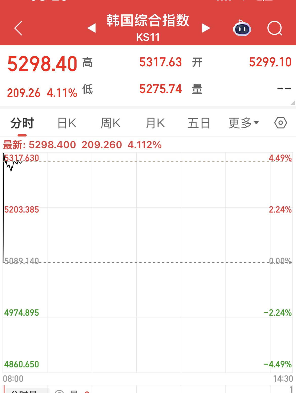 韩国综合指数大涨超4%!