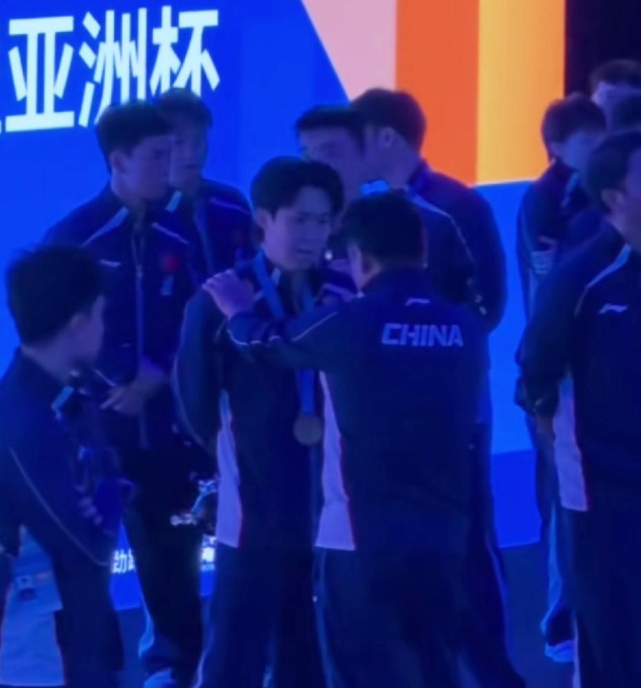 亚洲杯王楚钦夺冠后, 看看王皓是怎么“得瑟”的, 瞬间化身“变脸大师”, 更是恨不得抱着大头“亲一口”, 他的小儿子在家更是“乐疯”了。 亚洲杯男单王楚钦夺冠后, 王皓指导立马高兴地朝王楚钦握拳, 几秒后立马又瞬间严肃起来。 他肯定突然想到, 不行作为教练要喜怒不形于色, 要不一会本子来握手, 又该“嫌弃”他太高兴了。 白告真是太难了, 赢了高兴也得憋着。 王皓指导小儿子更是在家乐疯了, 躺在床上不睡觉, 一直在那里念叨, “王楚钦第一, 张本智和第二…” 真是比他爹还高兴。 后来王皓还抬手示意大家, 一起为王楚钦欢呼。 大合照的时更是两手搭在王楚钦的肩上, 恨不得抱着“亲两口”。 白告指导也是“嘚瑟”起来了, 男队太不容易了, 终于在家门口守住了这块金牌。 (图片源自于网络)