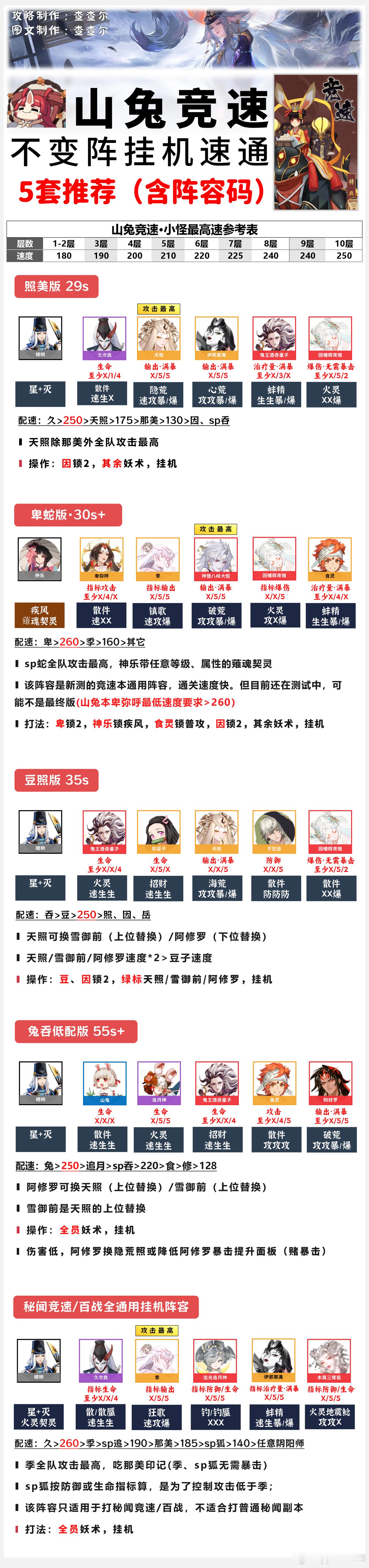 阴阳师手游马上游福超话创作官acg优创官 【山兔竞速】1-10层不变阵挂机,5套+阵容码■新增一套30s左右“蛇卑季”阵容,目前还在测试其竞速通用性(有望成为新的竞速通用阵容)文字码:①久照美吞因|TA|a5838af5387d95c8481ca1436149f90e