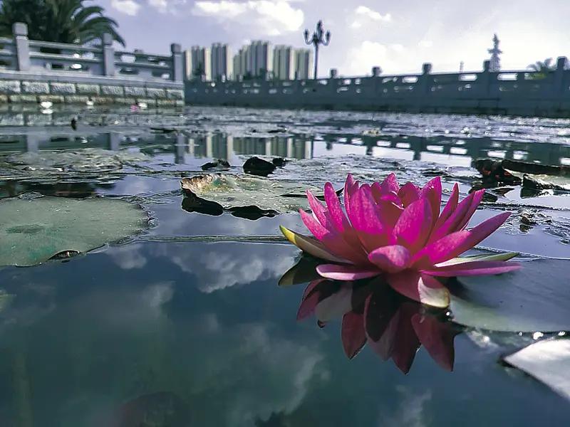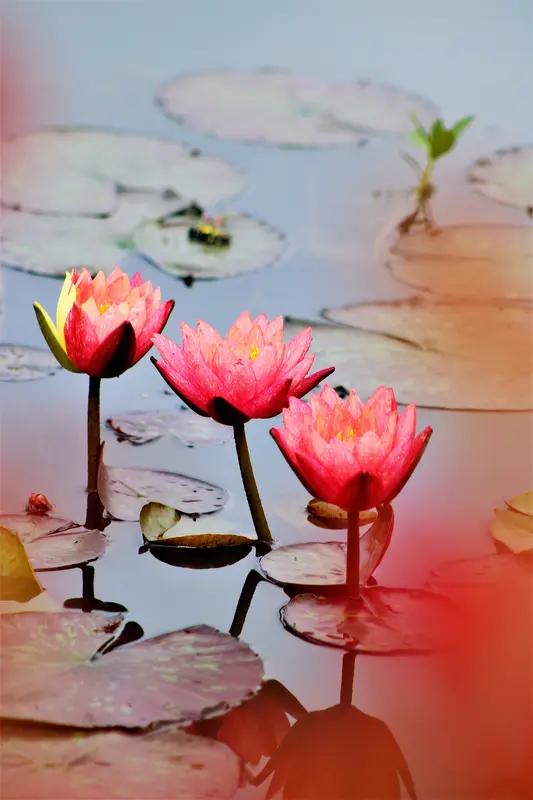 看到“片片绿叶送和风”这句下联,瞬间来了兴致。我对“朵朵红莲迎暖日”作为上联。“朵朵”对应“片片”,都是数量词的叠用,读起来朗朗上口。“红莲”与“绿叶”是不同的植物意象,一红一绿,色彩鲜明对比。“迎”和“送”是一组相对的动作,“暖日”和“和风”分别代表了温暖的阳光与轻柔的微风,营造出一种和谐又美好的氛围。感觉这么对,画面感一下就有了,仿佛能看到红日下红莲摇曳,绿叶间和风轻拂的场景。