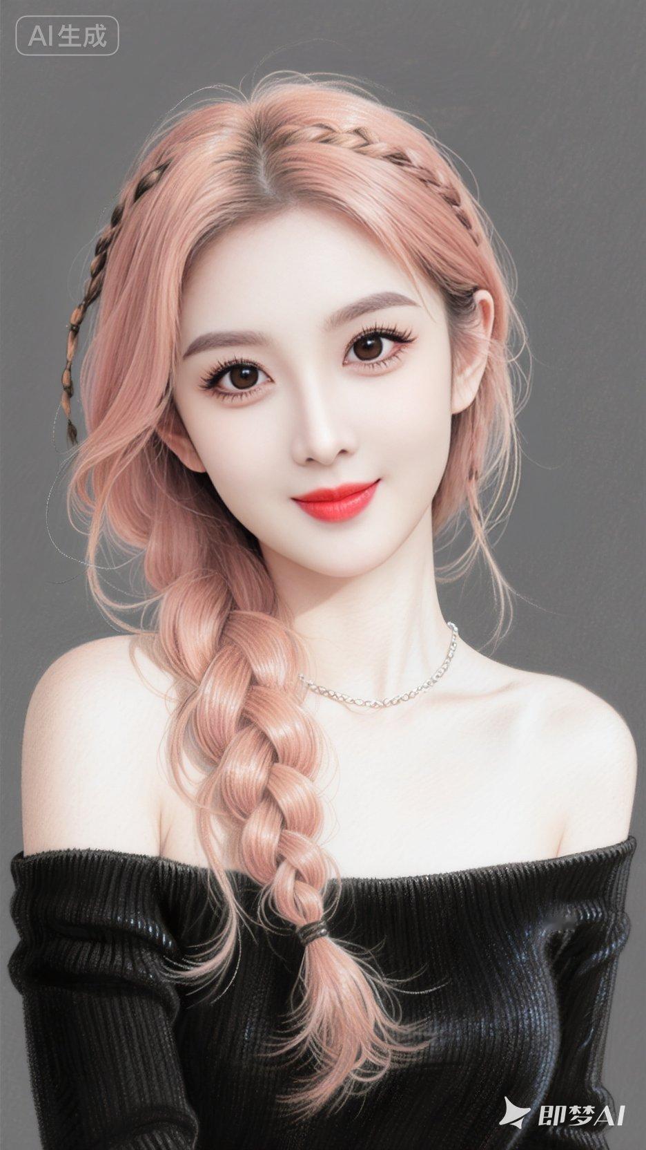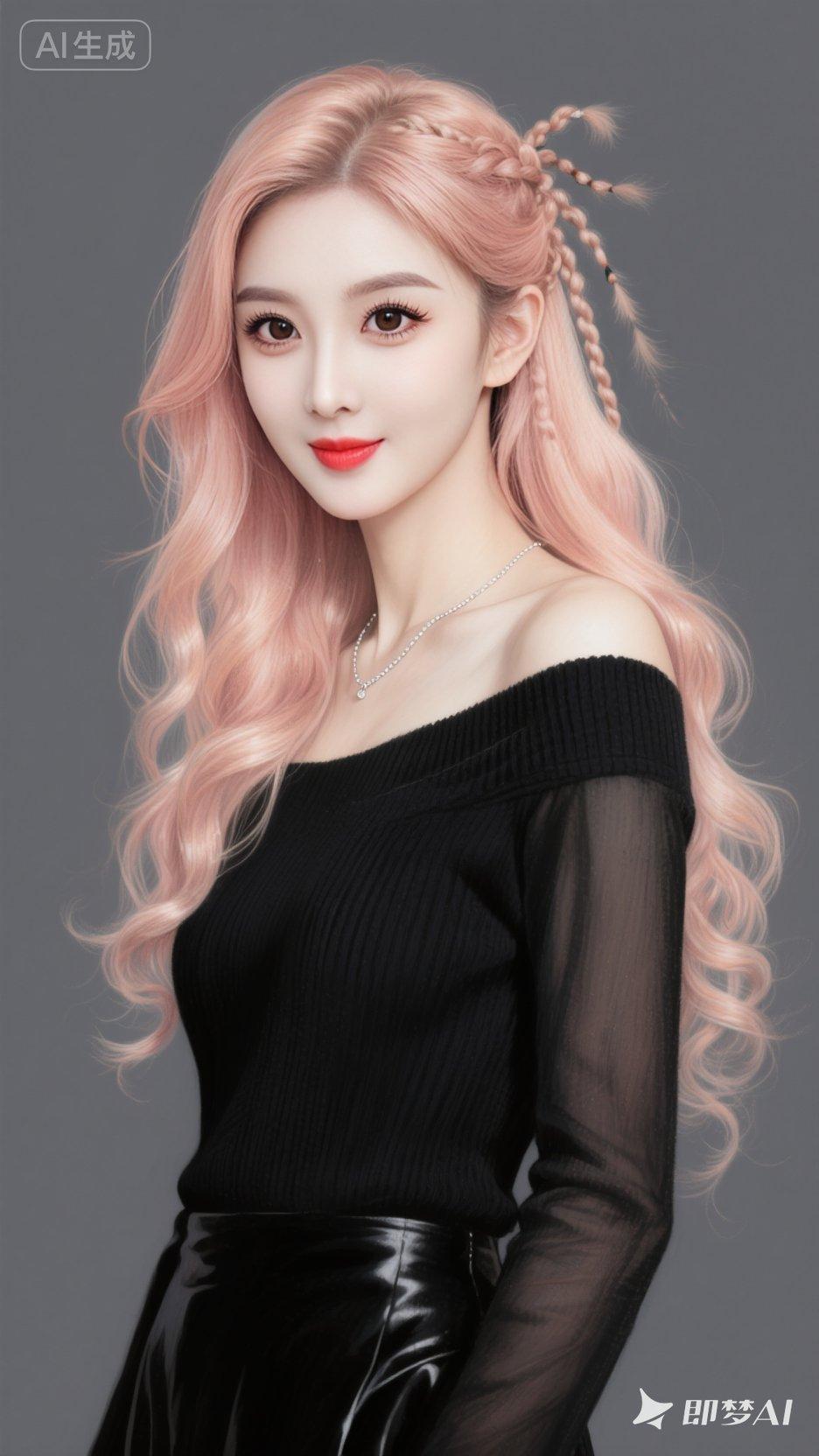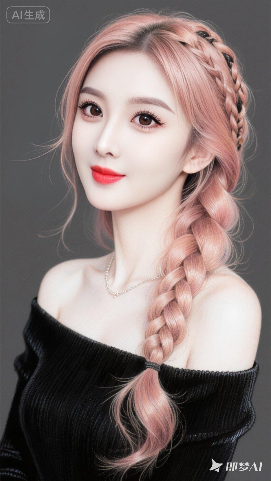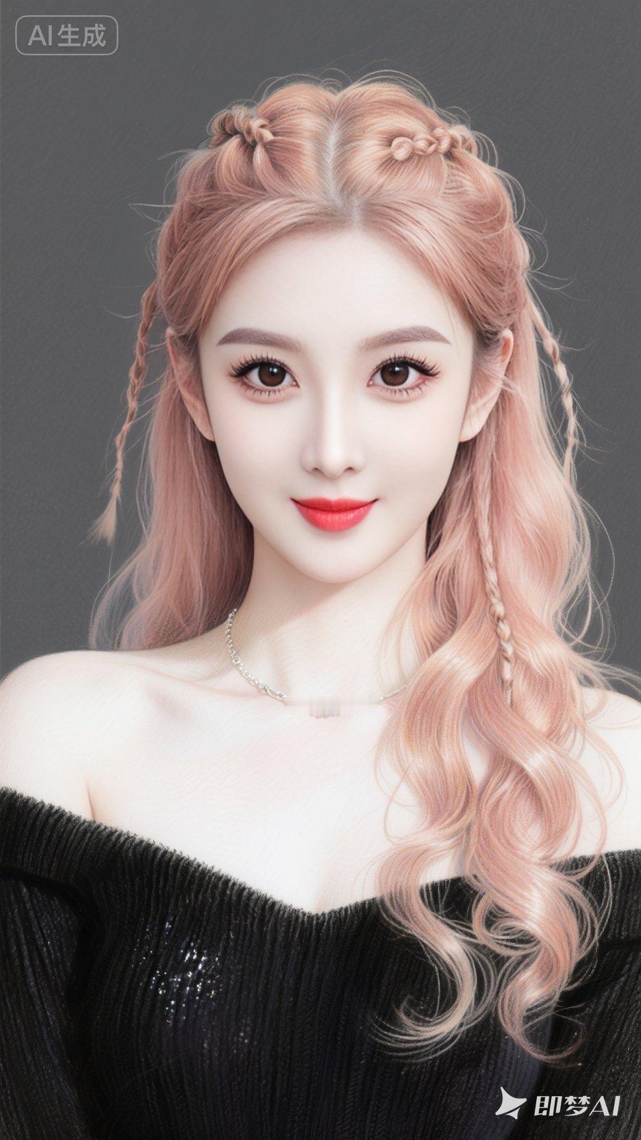 一个女人,纯白肤色,精致妆容,眼尾细长上扬,长长的睫毛,发光玫瑰金色头发,头顶两鬓有精致的脏辫,长卷发盘卷在下面,什么样的身材会美到犯规?