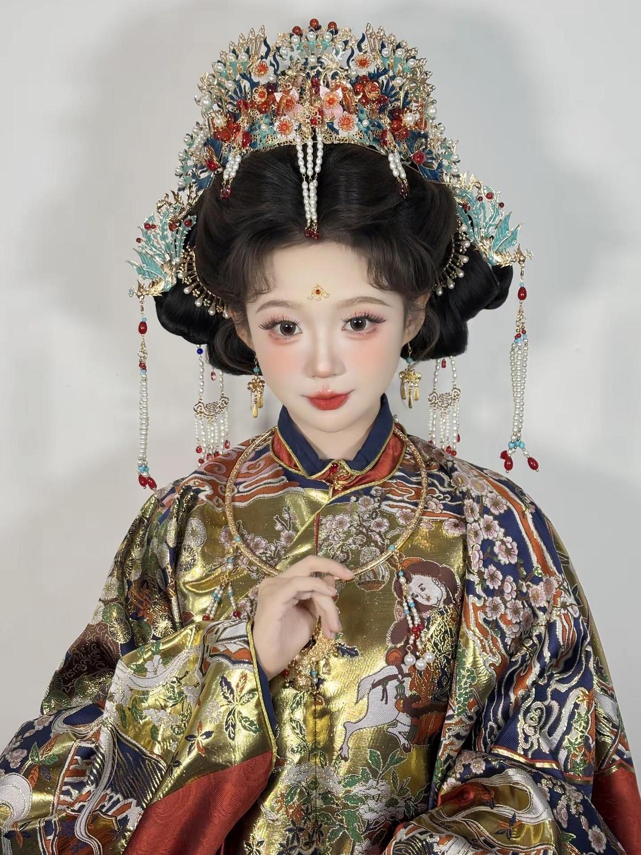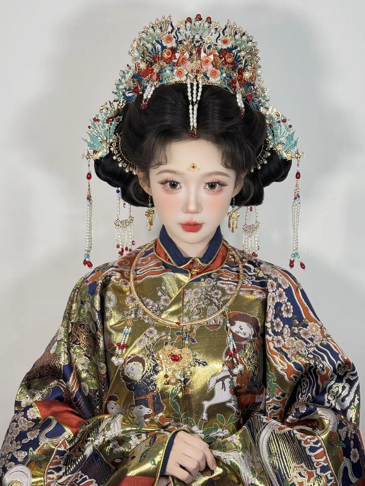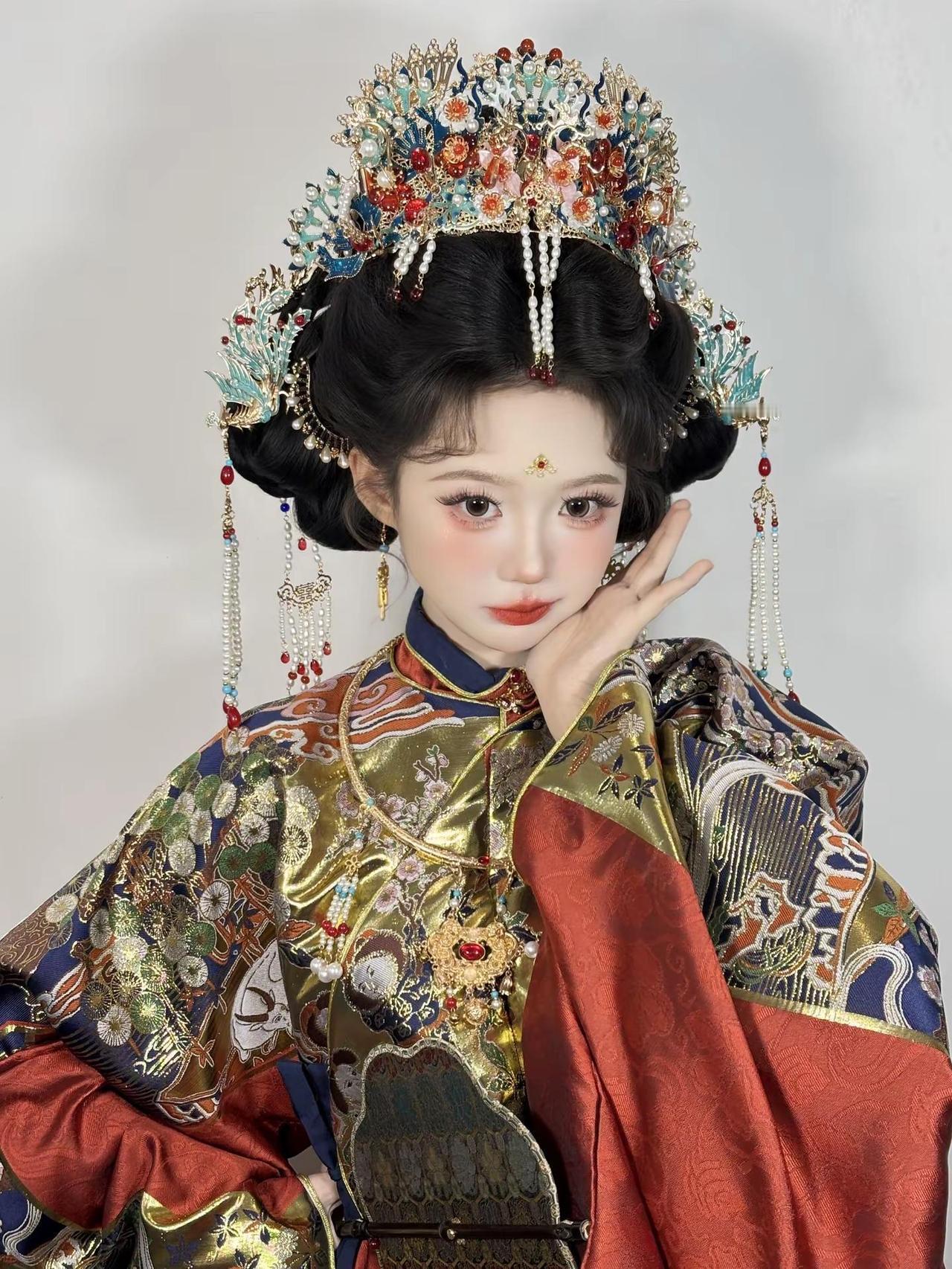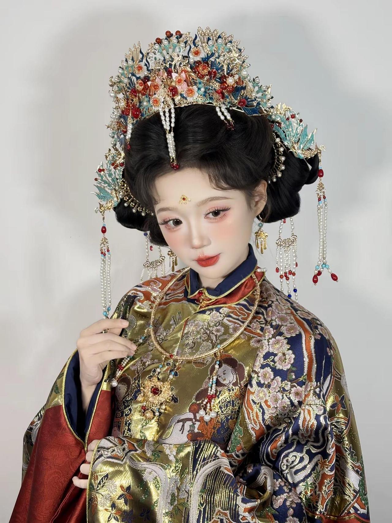 华丽暴击~这套明制妆造简直珠光宝气呀~两只老虎妆造西安妆造明制妆造明制