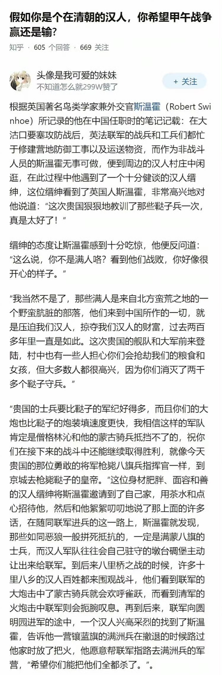 假如你是个在清朝的汉人,你希望甲午战争赢还是输?