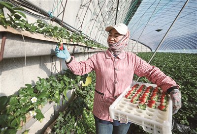 2014年,张晓琳发现自家草莓的味道一年不如一年。“80%的原因在土壤。”她下定决心改土,摒弃传统的落地种植,采用有机质、草炭土、牛粪科学配比的基质土,搭建高架栽培设施。“一亩地改造成本要3万多元,当时很多村民都觉得我‘疯了’。”张晓琳回忆道。