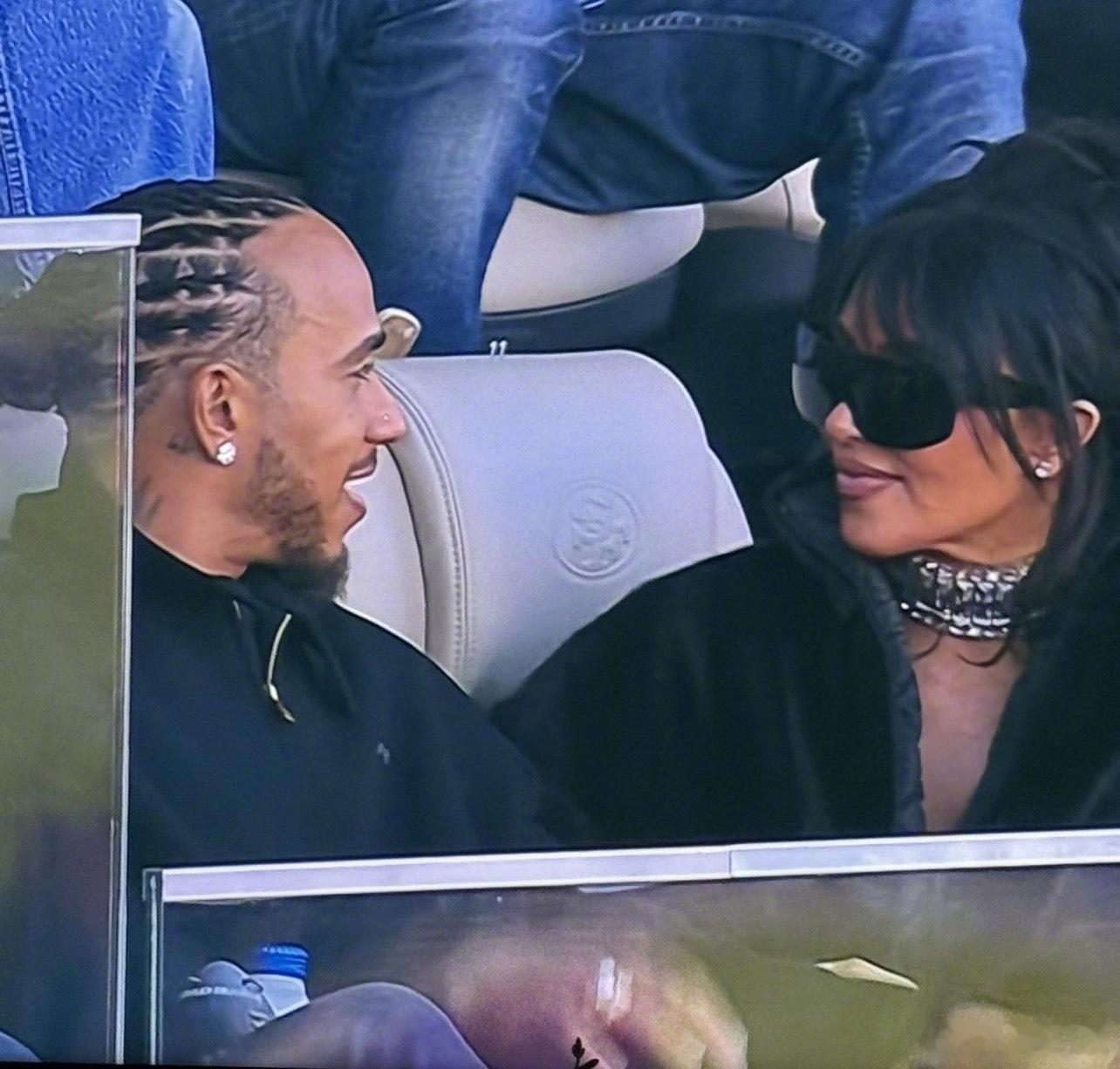 超级碗金卡戴珊和F1七冠王汉密尔顿共同现身超级碗观众席,两人前几天被传恋情