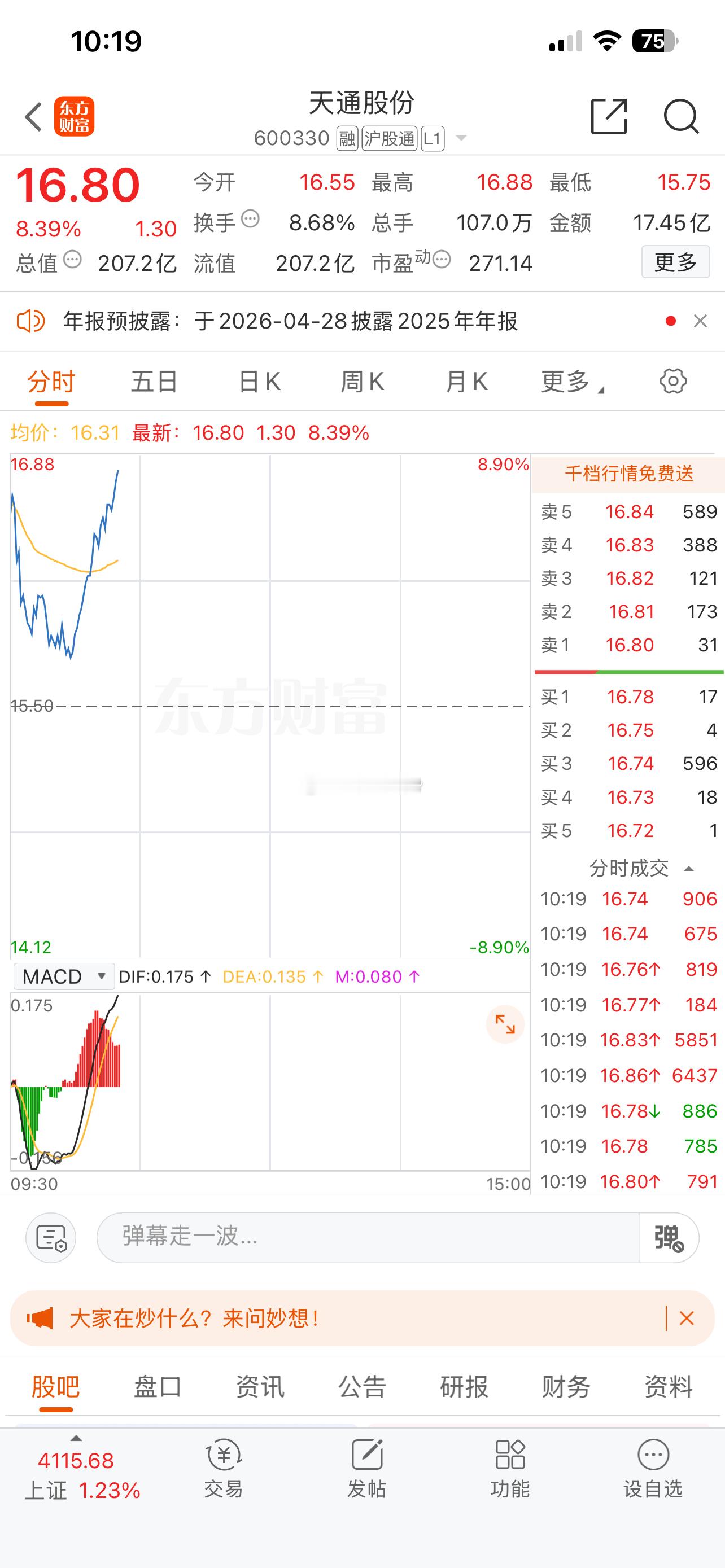 🎉🎉🎉天通要冲峰上板了吧!$杭电股份 sh603618$ $天通股份 sh600330$ 黄金a股