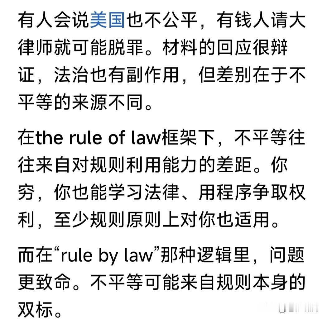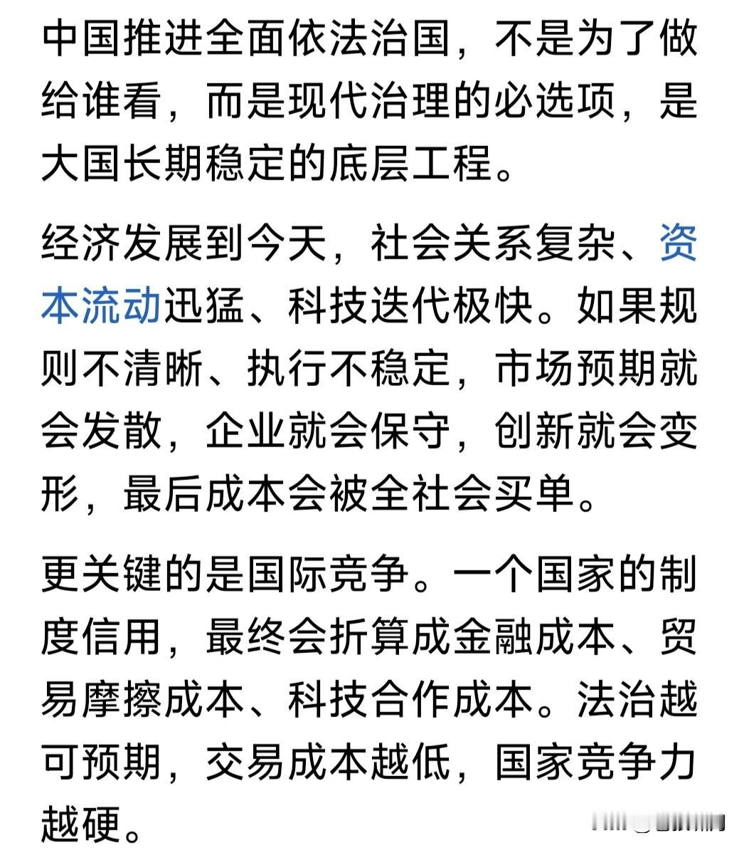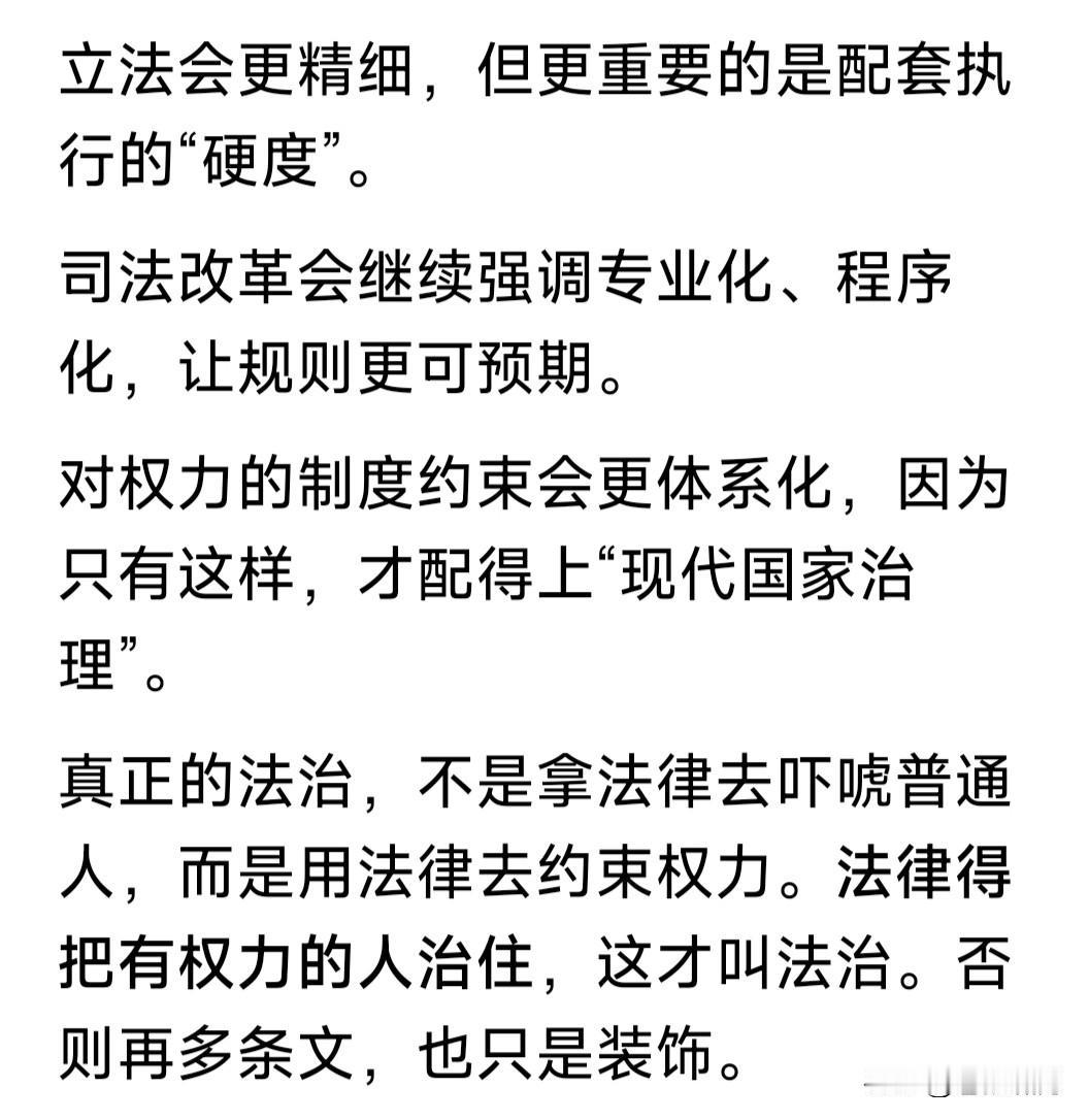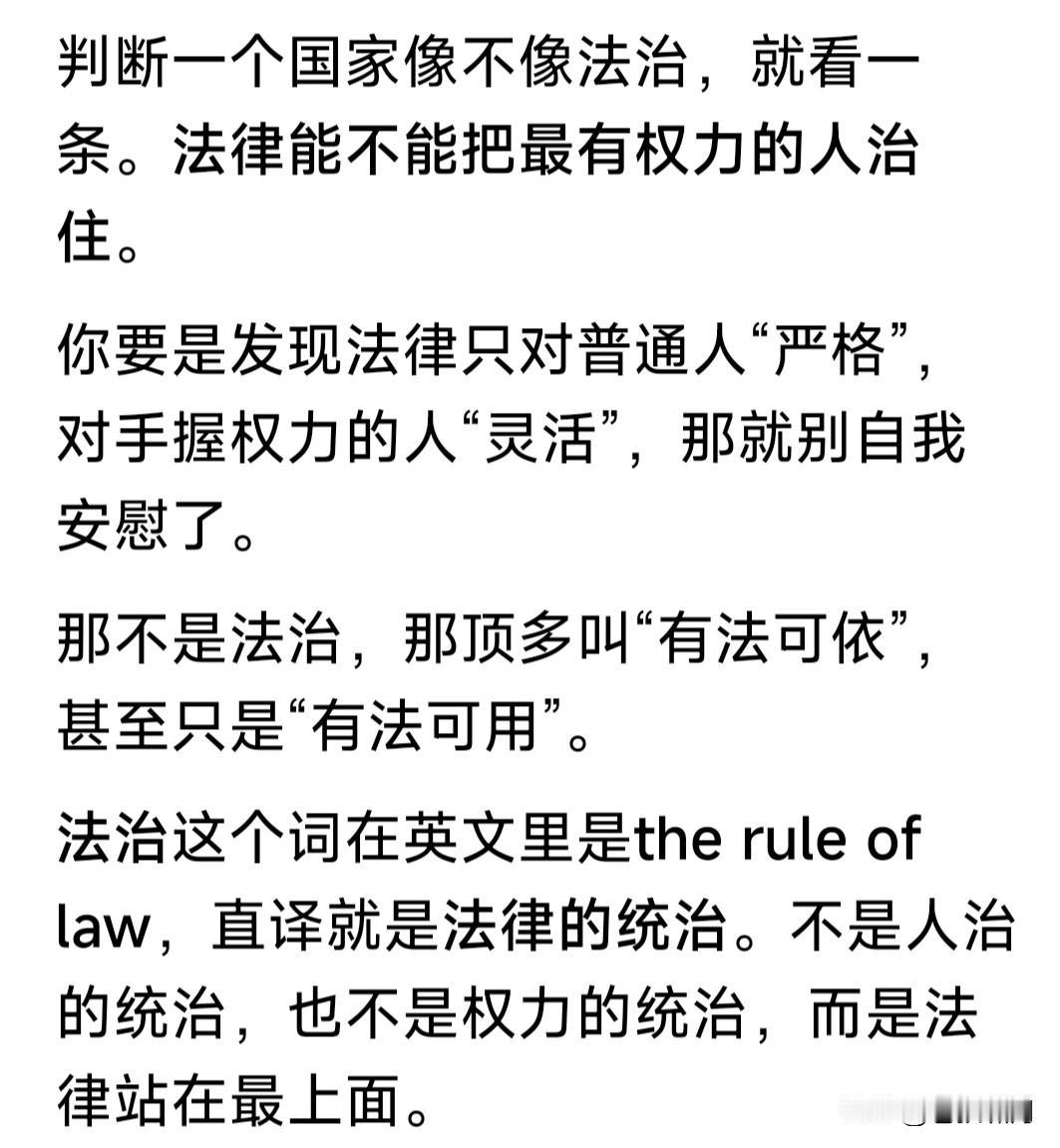 网友谈法治:法治不是喊口号!而是得把有权力的治住,这才能叫法治! 本人觉得说得有道理!原因如下: 1.人性自私,都有欲望。但实现欲望不能侵犯别人的权益,侵犯就是违法,就是不正当,要受到法律法规制裁。 2.我们从小接受教育,要遵纪守法。老百姓对法律都很敬畏,实现个人欲望不敢违法乱纪,大都是用正当手段。 3.但有权力的人往往不同,有时私欲膨胀,罔顾法纪贪腐受贿,侵占弱小者利益,出了事容易摆平,有恃无恐。 4.改革开放之后,国家推进依法治国,提出“核心价值观”,要求全国人民努力践行,就是要全面实现民主法治。 5.中国封建时代,也曾提出“王子犯法与民同罪”!但由于是“皇帝家天下”,因此执行中就成了“刑不上大夫”! 6.我们现在是人民共和国!人民是国家主人,政府是人民公仆,无论官员与百姓都是公民,法律面前人人平等! 7.国家推进依法治国,人人都要遵守法律。但有权者受欲望驱使,更易丧失党性原则违法乱纪,这是事实存在。 8.党和国家纪检监察部门,一再强调要“把权力关进笼子”,实行社会监督,杜绝腐败犯罪!公民都应监督尽责! …………