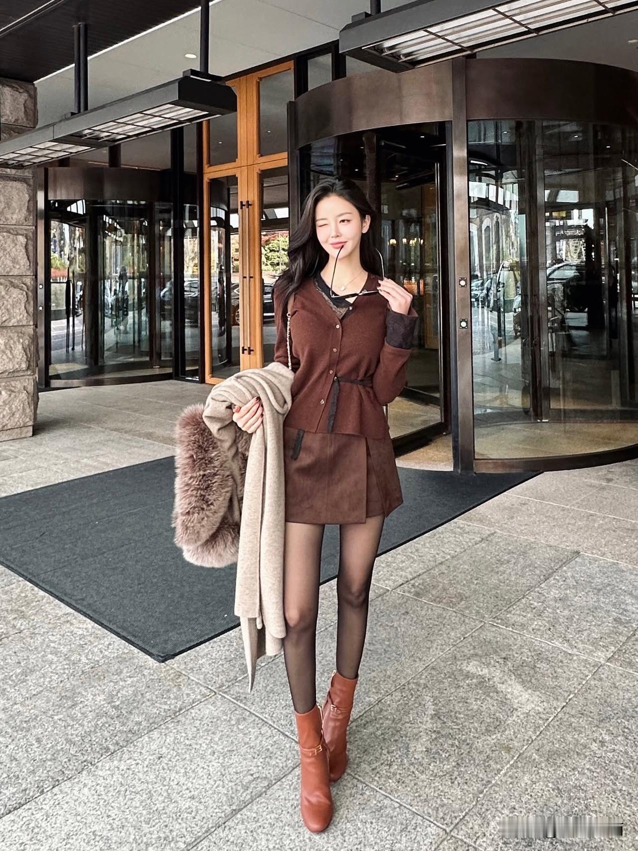 秋日穿搭指南:毛茸茸外套+棕色连衣裙,时尚又温暖!女人最耐看的长相是什么样的 棕色毛衣穿搭 棕色短裙穿搭 棕色显气质穿搭