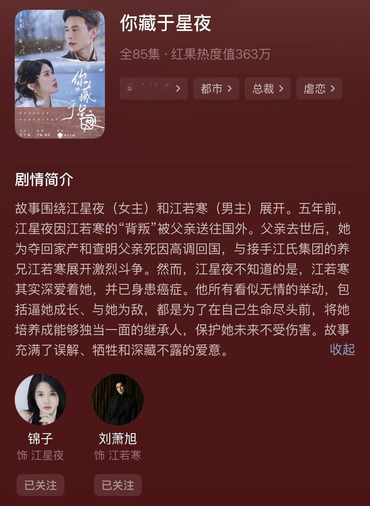 我的发,这个你藏于星夜是人能写出来的剧情?没事找事,没苦硬吃!2026年了居然还有这种剧情,为虐而虐…… 男女主,一个领养一个亲生!本来要结婚了,然后男主查出癌症晚期,把女主送国外! 说女主不爱他了才能回来!男主筹谋好多年就是为了让女主恨他捧女主上位 女主五年后回来了开始进公司,男主一直把女主往外推 表现出抢她公司的样子让女主恨他!一直虐男主身体各种吐血还要为了保护女主被打! 男主都快死了好不容易刚抢救回来都要爬起来去救女主然后再吐血!看的我? ? ? 女主知道真相后又来个假未婚妻敢女主走 还要说自己死了给自己立了个碑,当然真快死了,准备一个人孤独死去! 最后女主发现男主才是她爸亲生的,她是领养的! 最后女主留了个遗嘱去陪男主了!