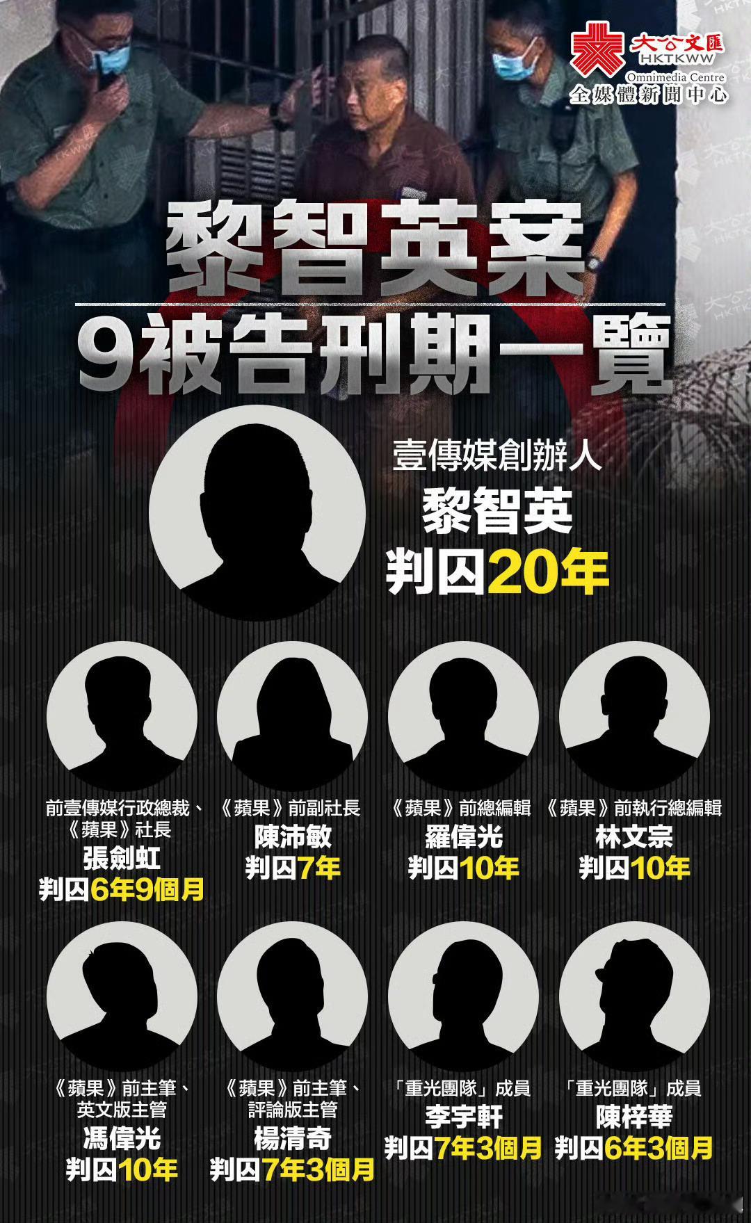 黎智英被判20年他这个岁数,20年的意思就是余生都在里面!对,就是这样,让他看着香港继续繁荣下去!