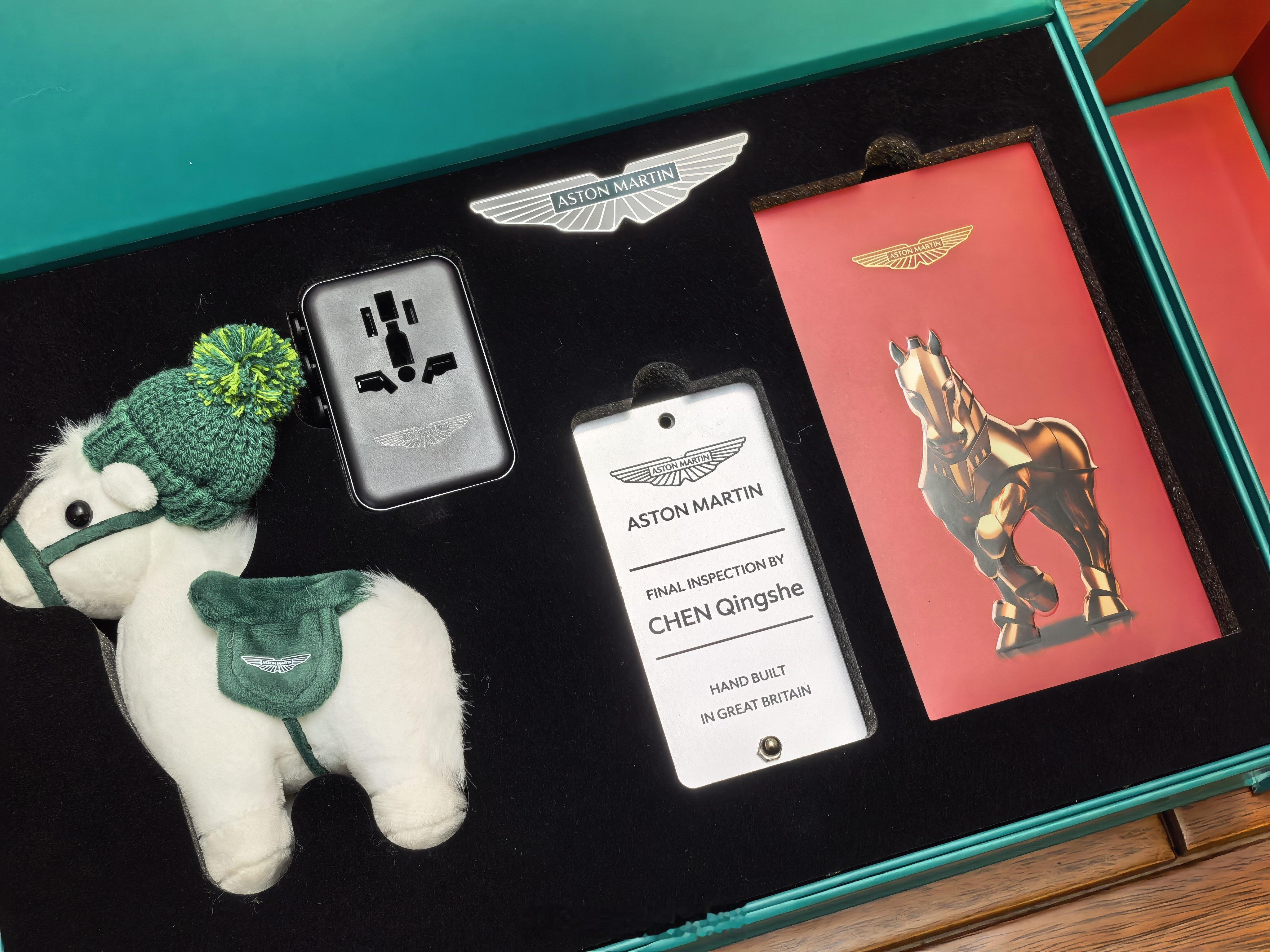 今年阿斯顿·马丁的新年礼就不再抽了。里头有带我名字的金属行李牌。其次多功能出国旅行插头,竟然集成了氮化镓的快充口,可以少带很多插头,太棒了。