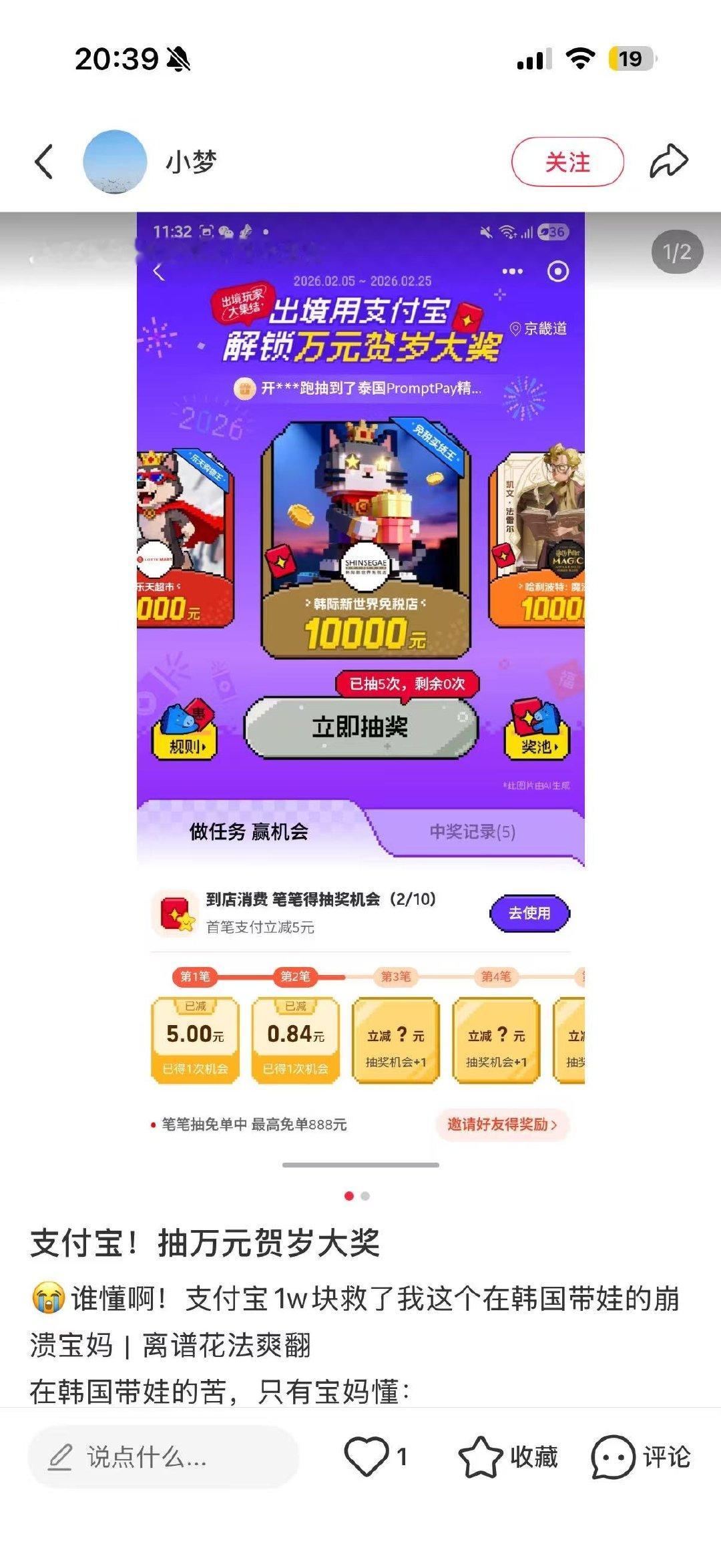 出境被支付宝万元大奖狠狠宠爱支付宝万元大奖开启魔法出境游上zfb搜「惠出境」就能参与,不仅有机会抱走大奖,还能领10笔消费减免,购物、吃小吃首笔直接减5元,消费越多抽奖机会越多