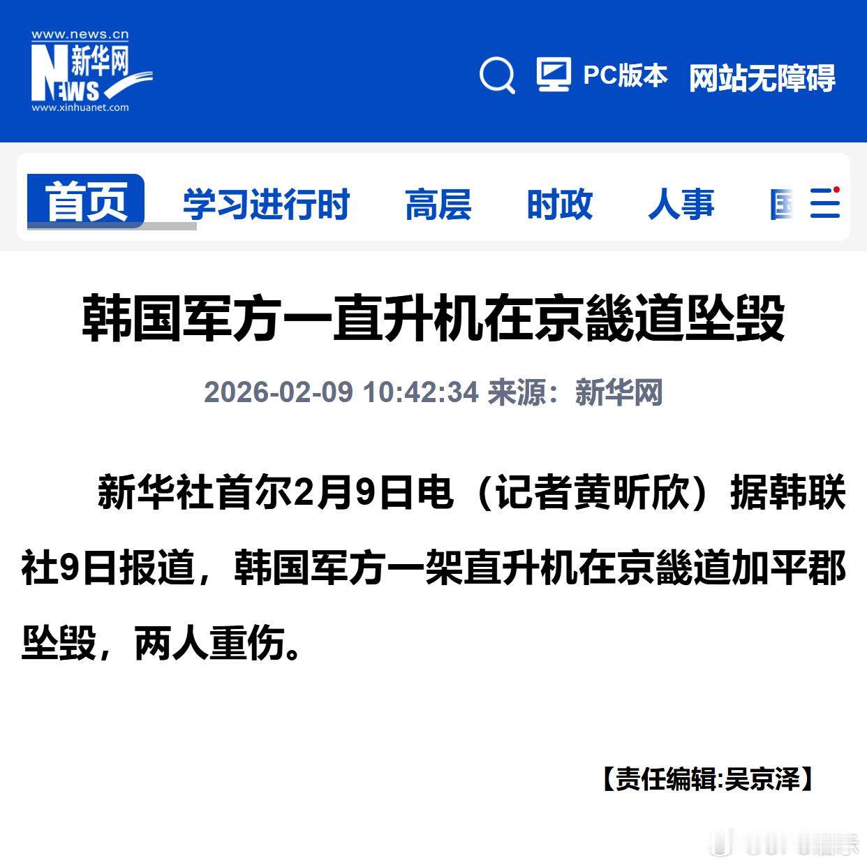 韩国军方一直升机在京畿道坠毁
